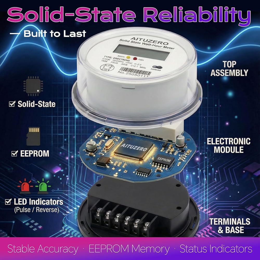 • أداء موثوق: تم تصميم هذا التصميم الإلكتروني ذو الحالة الصلبة لمعالجة المخاوف المتعلقة بالموثوقية، ويوفر استقرارًا طويل الأمد للأنظمة السكنية والصناعية الخفيفة بتردد 60 هرتز. إنه يتحمل التقلبات الكهربائية الصادرة عن المحركات والمضخات ووحدات التدفئة والتهوية وتكييف الهواء (HVAC) دون فقدان دقة الكيلووات في الساعة. يحمي الغلاف المحكم الدوائر عند استخدامها في صندوق أو لوحة مناسبة، مما يضمن مراقبة الطاقة بشكل متسق عبر تغيرات درجة الحرارة والرطوبة. بالنسبة للمستخدمين المحبطين بسبب الأعطال المبكرة، يوفر هذا العداد عملية يمكن الاعتماد عليها في أي بيئة طاقة كهربائية. يحتفظ تخزين EEPROM ببيانات الاستخدام الأساسية خلال دورات الطاقة، بينما يوفر مصباح LED النبضي طريقة سريعة لتأكيد وظيفة المقياس المناسبة.