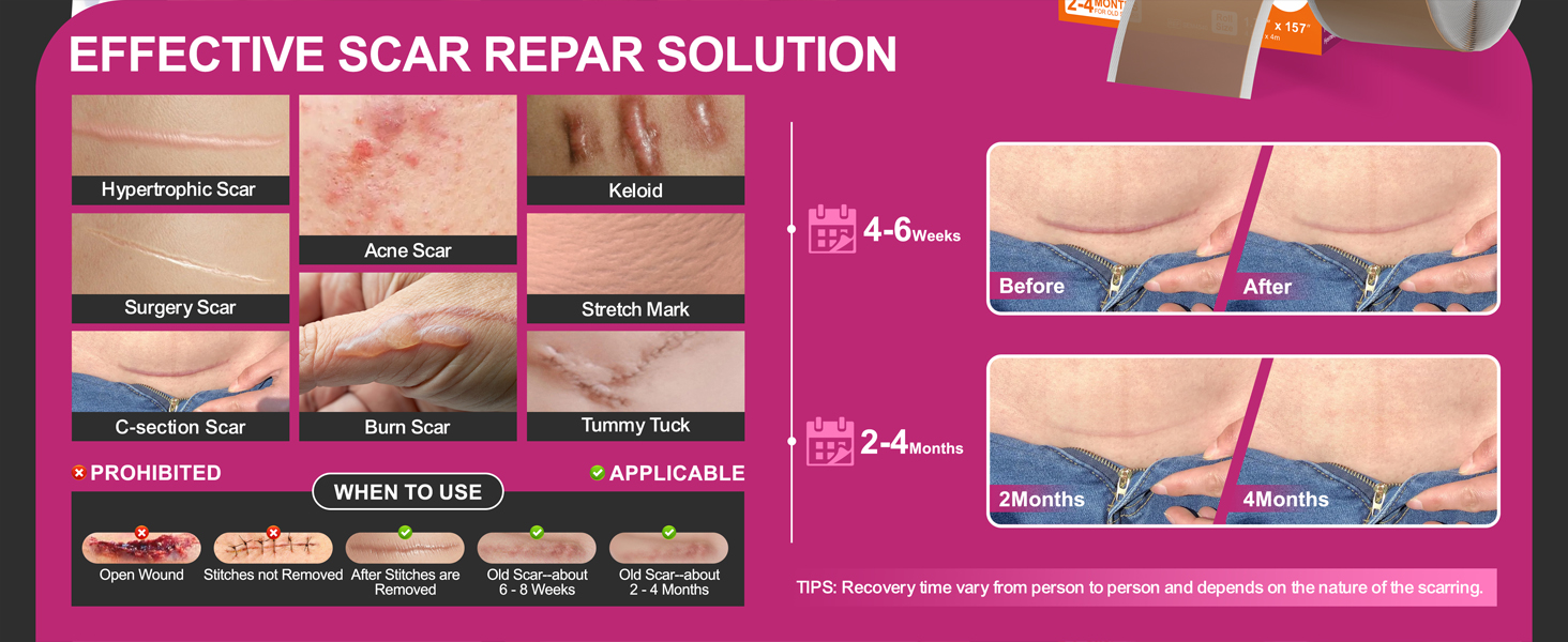 Recommended Wear Time & Reusability: For new scars, wear consistently for at least 6 weeks. For old scars, up to 4 months of use for optimal results. Washable and reusable, each piece maintains effectiveness for up to one week with proper care