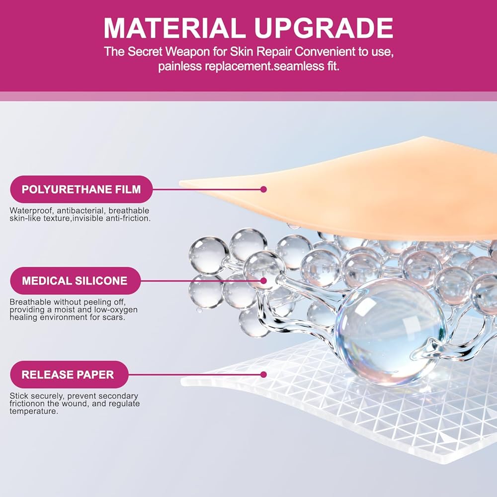Ideal for Scars & Wrinkle Reduction: Works on both new and old scars, including surgical scars, hypertrophic, keloids, stretch mark, and c-section scars. The 4.5cm width (0.5cm wider than standard options) offers broader coverage, while also doubling as forehead wrinkle patches to minimize the appearance of fine lines