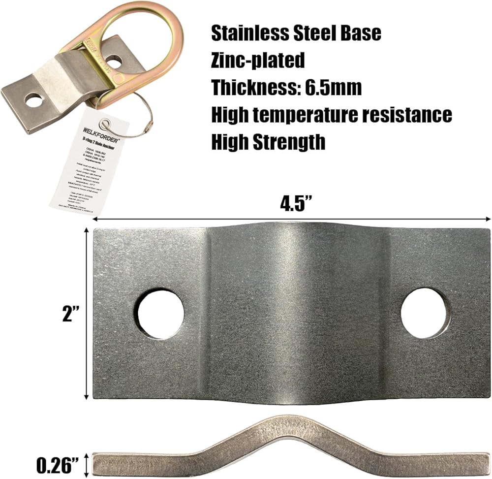 • DURABLE MATERIAL: WELKFORDER D-Ring 2 Hole Anchor is made of Zinc-Plated Stainless Steel Base with 6.5mm thickness features high temperature resistance, anti-corrosive protection and resistance to deformation to avoid damage from the environment. Lightweight and Heavy-duty ensures long-lasting performance in challenging work environments, providing dependable fall protection for users.