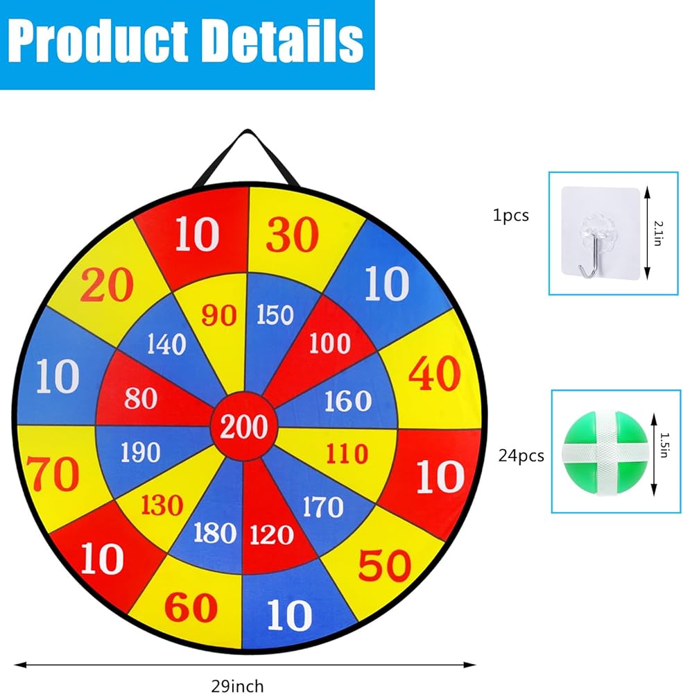 29" Large Dart Board for Kids, Board Games with 24 Sticky Balls, Sticky Dart Board Indoor Outdoor Sport Fun Party Game Toys for Kids Boys Girls Ages 3 4 5 6 7 8 9 10 11