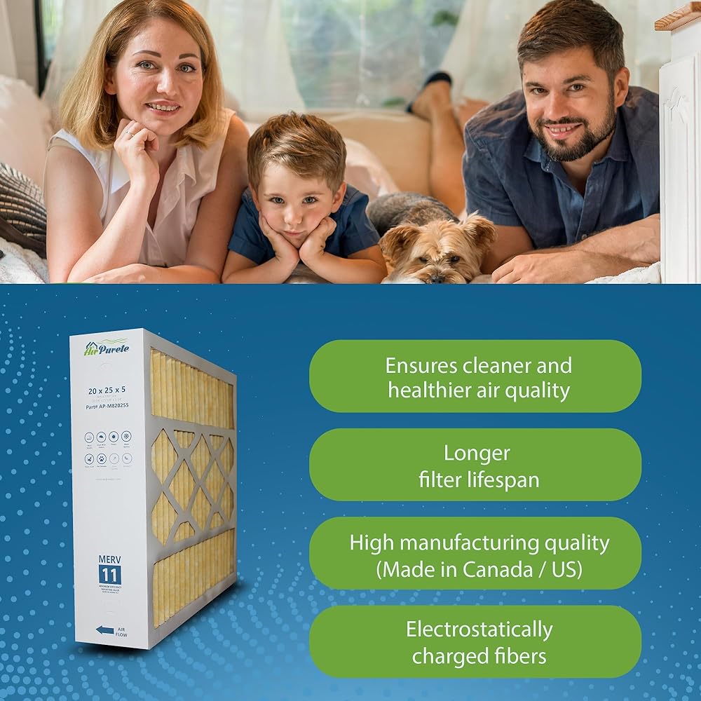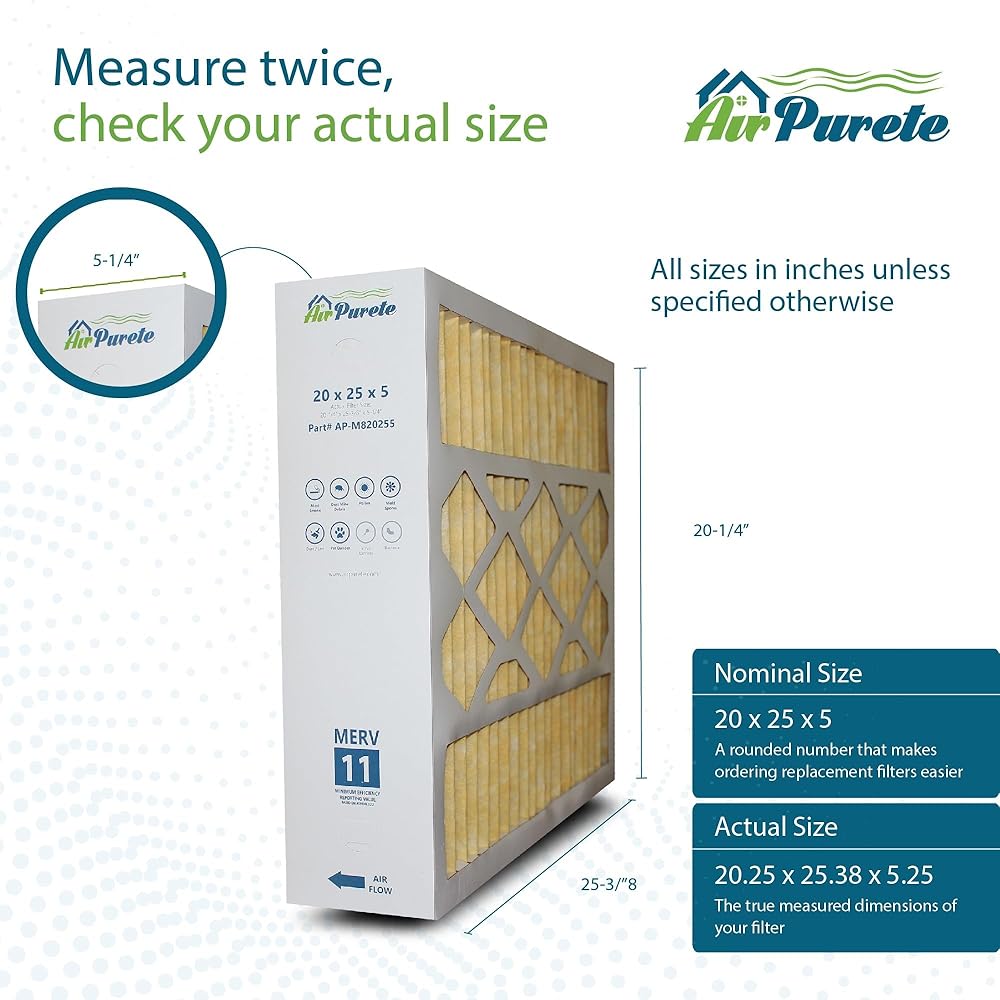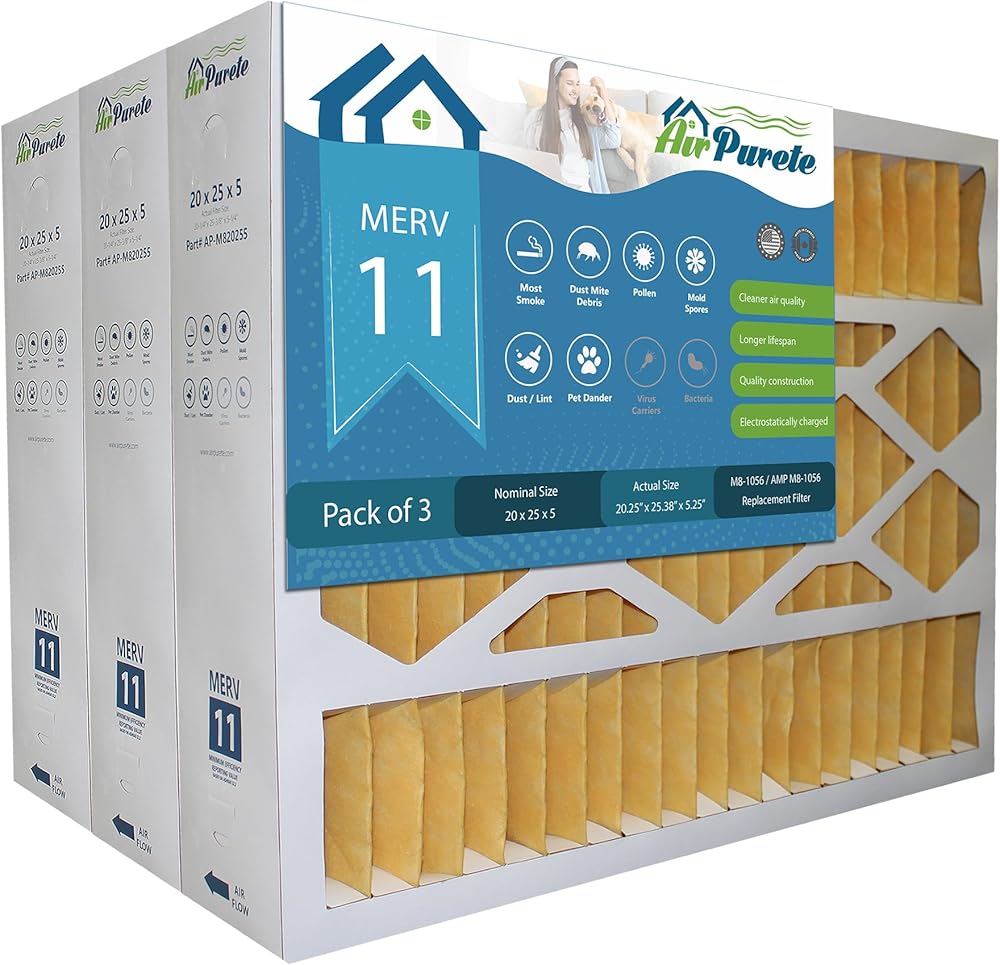 M8-1056 Replacement Filter | AirPurete AP-M820255 | Actual Size 20-1/4" x 25-3/8" x 5-1/4" (20x25x5) | Merv 11 | Pack of 3 | Manufactured in Canada