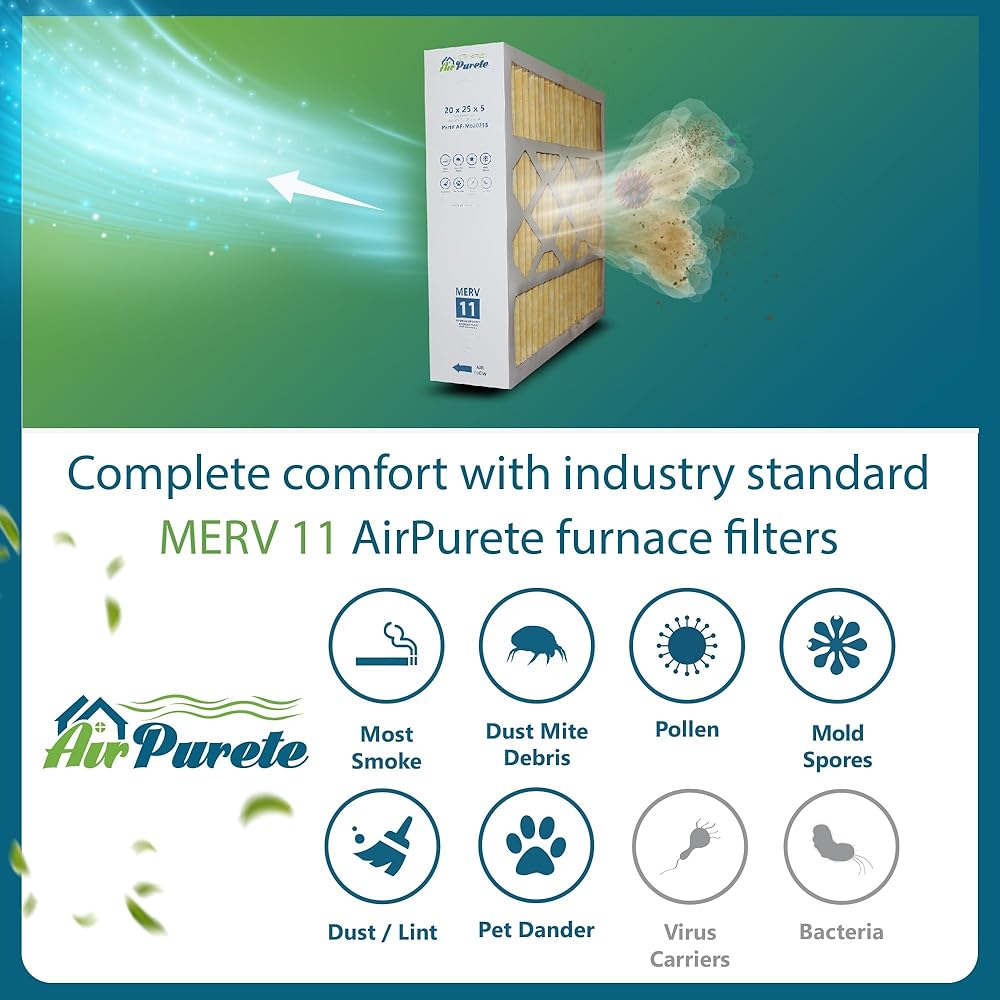 • يعمل فلتر MERV 11 عالي السعة والكفاءة (مقارنة بـ MPR 1000 - 1200 & FPR 7) على حماية المنازل من حبوب اللقاح والغبار والوبر عن طريق محاصرة 95% من الجزيئات المحمولة بالهواء دون التأثير على تدفق الهواء