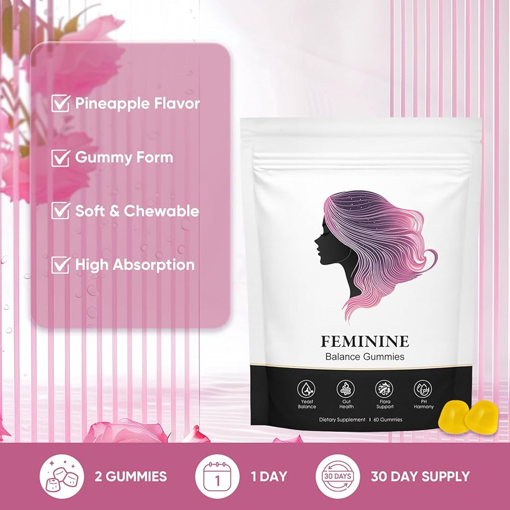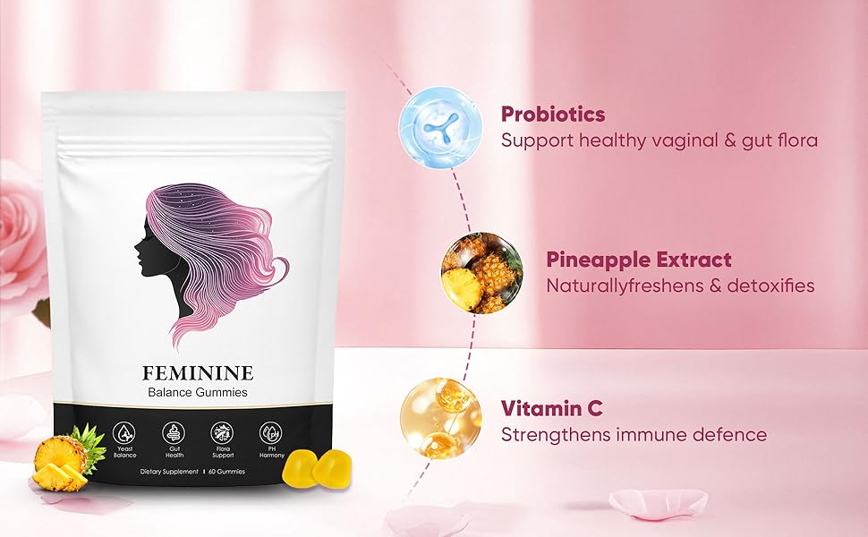 Feminine Balance Gummies for Women, Pineapple Gummies for Women pH, Women’s Health Probiotics - pH Balance, Healthy Odor, Flora, Vaginal & Gut Health, Immune Support (1)
