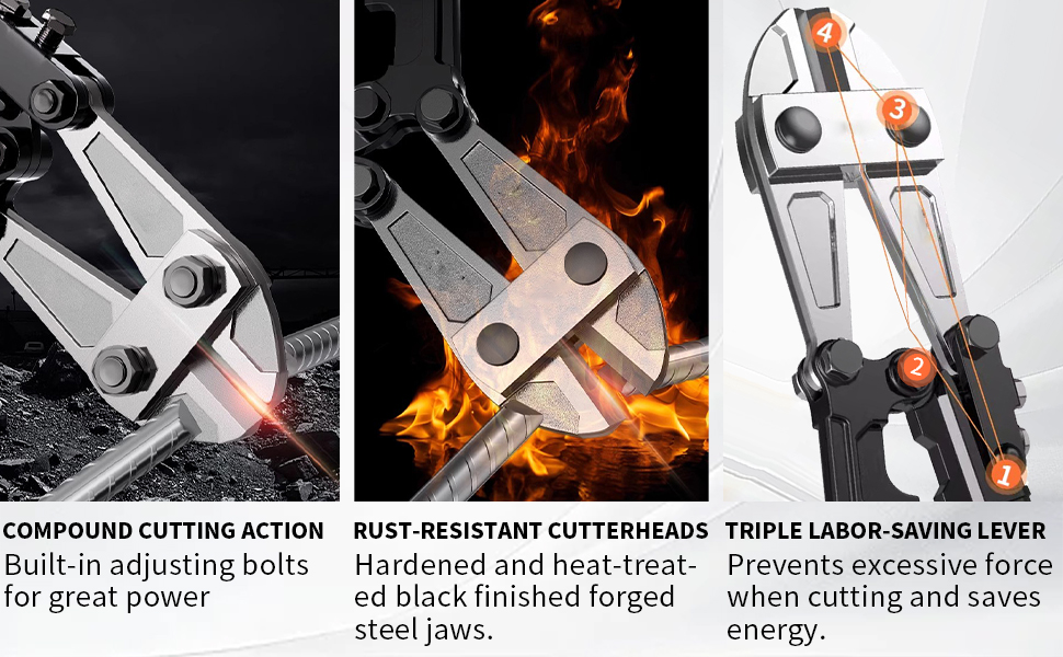 【متانة بدرجة احترافية】تم تصميمها للمقاولين والميكانيكيين وعشاق الأعمال اليدوية، حيث تقاوم قواطع البراغي هذه التآكل والتآكل والتشوه، مما يجعلها حلاً طويل الأمد لمهام القطع شديدة التحمل.