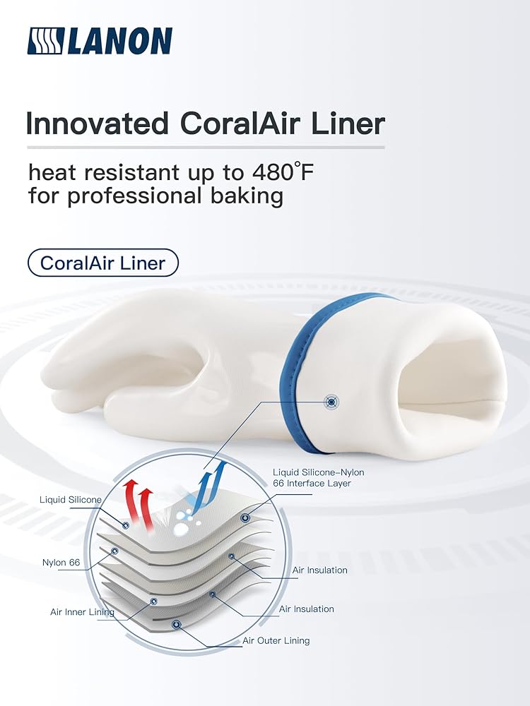 • السيليكون السائل المخصص للطعام - LANON هي أول شركة تنتج قفازات الفرن المصنوعة من السيليكون السائل. قفازاتنا مصنوعة من السيليكون السائل المقاوم للحرارة، وهي مادة متقدمة تمتلك قوة شد عالية، وتتحمل الاستخدام اليومي، وتحافظ على أدائها يومًا بعد يوم.