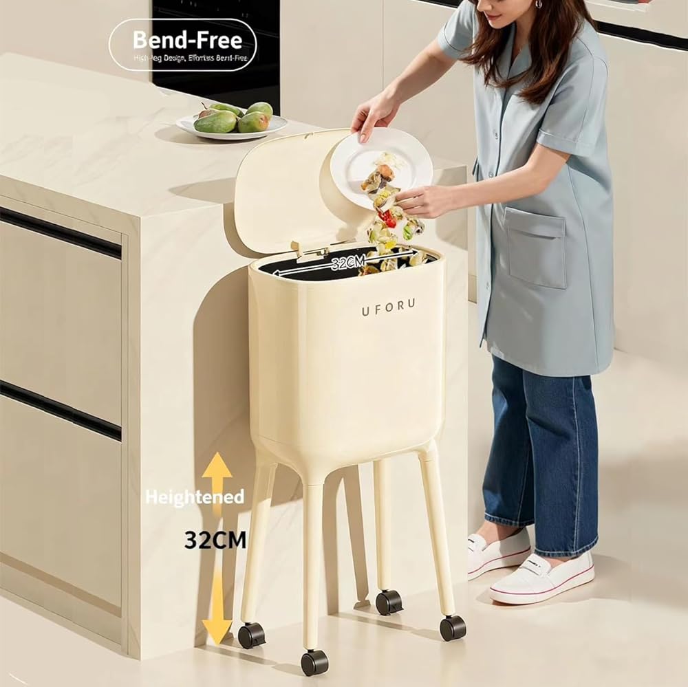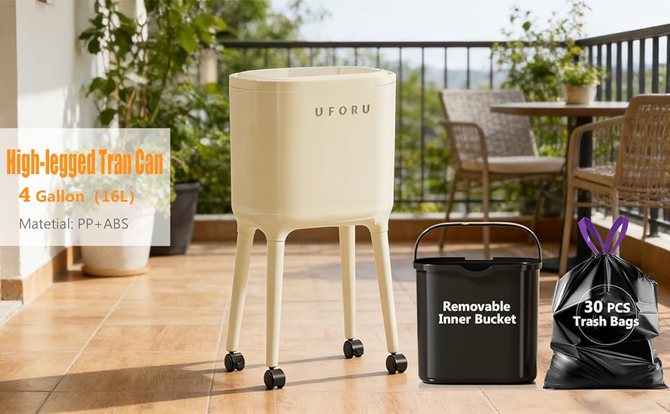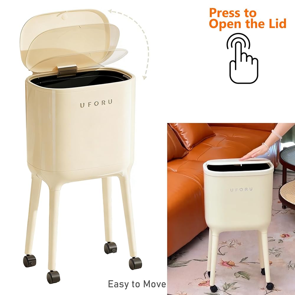 راحة أثناء التنقل: مجهزة بتصميم عجلة دوارة على جميع الأرجل الأربعة، مما يسمح بحركة سلسة عبر الأسطح المختلفة حتى تتمكن من نقل سلة المهملات بسهولة بين الغرف حسب الحاجة. >> مطلوب تجميع بسيط للعجلات والأرجل، ولا حاجة لأي أدوات