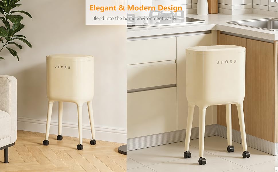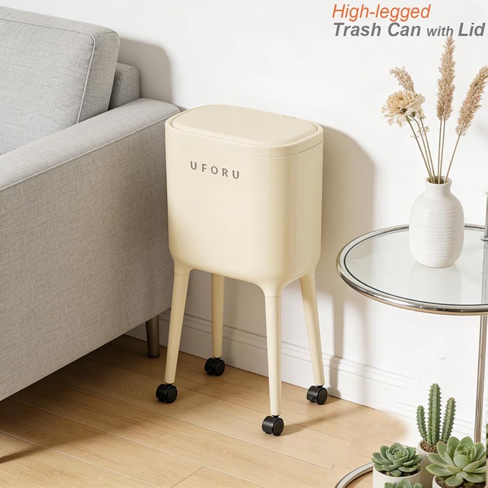 تصميم أنيق: سلة المهملات ذات الأرجل العالية مع غطاء يبلغ طولها 26.6 سم، وتتميز بجمال عصري مع أربعة أرجل متينة تحافظ على الصندوق مرتفعًا لسهولة الوصول دون الانحناء