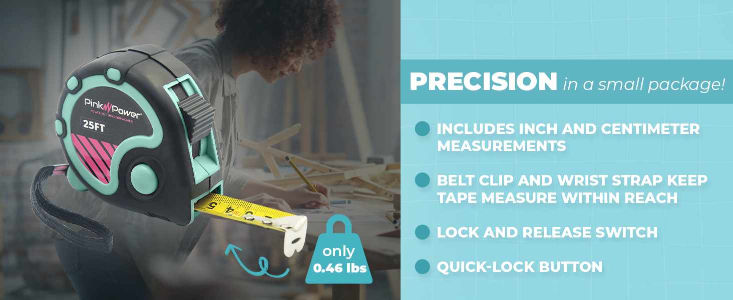 خفيف الوزن: يشتمل شريط القياس هذا الذي يبلغ طوله 25 قدمًا على مشبك حزام وحزام معصم، مما يجعل من السهل الاحتفاظ به في متناول اليد أثناء العمل في مشاريع مختلفة.