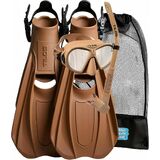 Dive into underwater bliss with this premium Tilos bundle—crystal-clear vision, effortless breathing, and powerful propulsion in one travel-ready set. Aquastalk Mask: Phenomenal wide-angle lenses for distortion-free, edge-to-edge views. Minimal volume for easy equalization and all-day comfort. Seamless frame-integrated buckles for secure, shift-free adjustments. Matte anti-reflection finish for glare-free, wildlife-respecting stealth. Hydrodynamic shape slashes drag for smoother dives. Hi-Flow 2 Snorkel: Splash guard top keeps water out for drier, uninterrupted breaths. Contoured bore delivers unrestricted airflow through currents. Instant purge valve clears water fast for quick recovery. Ultra-soft silicone mouthpiece prevents jaw fatigue. Flexible, kink-resistant build dries quick and lasts. Technix Travel Fins: Ultra-light TPR construction: tough, packable power. Hybrid foot pocket: adjustable open-heel fit for barefoot or boots. Ergonomic design with heel pad and grip for secure, fatigue-free strides. Compact blades generate thrust without exhaustion. Travel-smart: clip-on storage hole for easy rinse-and-go.