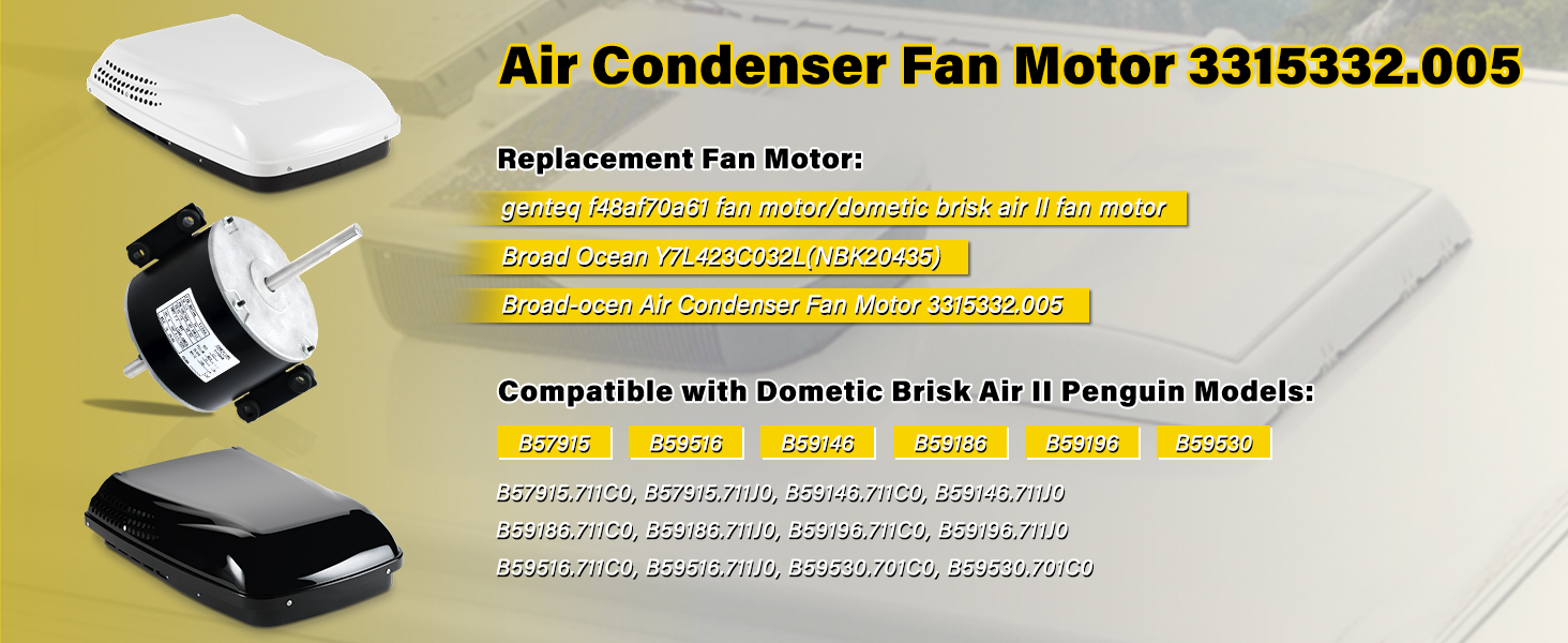 【رقم الجزء】: بديل محرك المروحة 3315332.005 لمحرك المروحة genteq f48af70a61/محرك مروحة الهواء السريع المنزلي 2/محرك مروحة مكثف الهواء واسع النطاق 3315332.005. يعمل على تشغيل المراوح والمنافيخ التي تحرك الهواء من خلال نظام تكييف الهواء في عربة سكن متنقلة