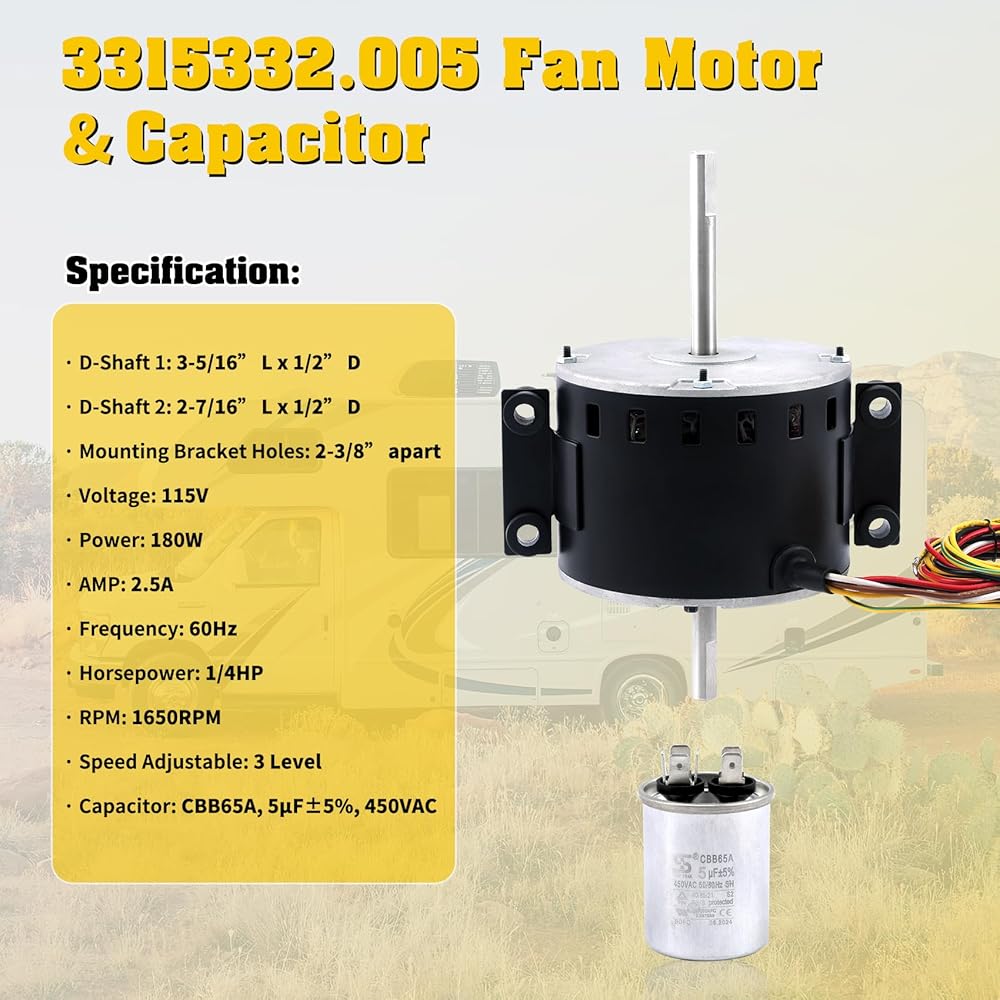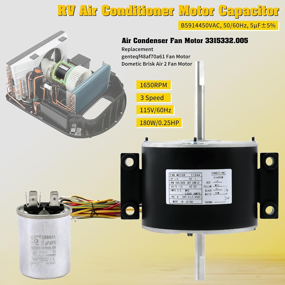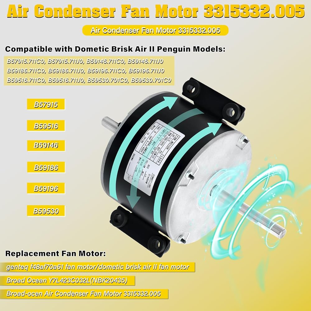 PIRIPARA 3315332.005, 3315332.005 Fan Motor Replacement for genteq F48AF70A61 Fan Motor, Compatible with Dometic Brisk Air II Fan Motor, OEM Replacement for Dometic 3315332.005-1/5 HP, 3-Speed
