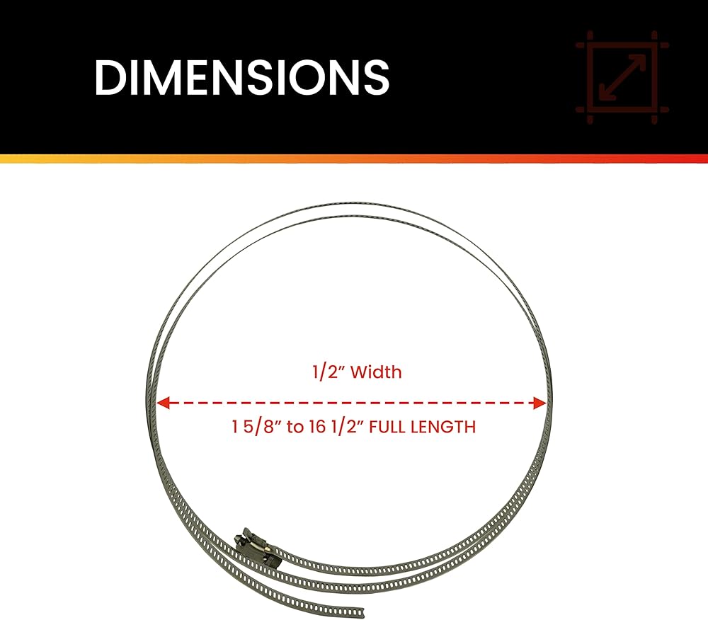 Pro Tie worm drive hose clamps are precision made from stainless steel to provide dependable and long lasting use. The 1/2 inch wide band provides an excellent seal with a variety of hose materials and yet is small enough to fit into tight places. The Phillips insert 5/16" hex head bolt allows for multiple tools to tighten the clamp. All stainless steel construction provides superior corrosion resistance. Pro Tie hose clamps will work on a variety of applications from irrigation, home use, auto repair, marine, plumbing, farm, ranch, and industrial.