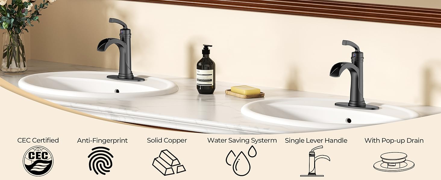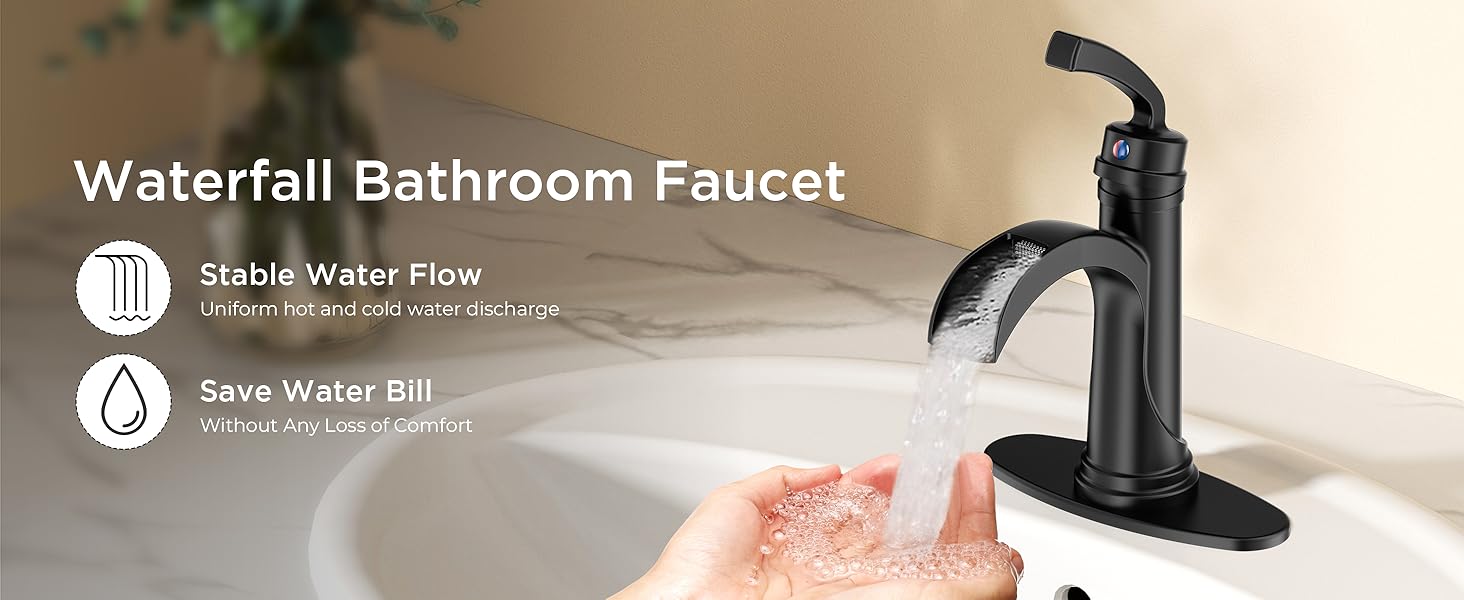 سهل التركيب: مع خيوط ضغط قياسية 3/8 بوصة، من السهل جدًا تركيب وتنظيف صنبور الحمام ذو الفتحة الواحدة. التصميم المختصر يجعل من الممكن تركيبه بنفسك باستخدام الأجهزة، دون الحاجة إلى سباك. وهو متوافق مع حوض الحمام ذو الفتحة الواحدة أو الثلاثة.