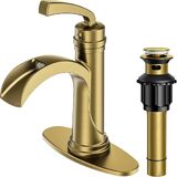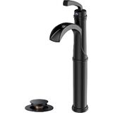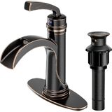 Forious Bathroom Sink Faucet Oil Rubbed Bronze Single Handle One Hole Antique Waterfall Bathroom Faucet with Metal Pop Up Drain and Deck Plate for Lavatory Vanity Farmhouse RV