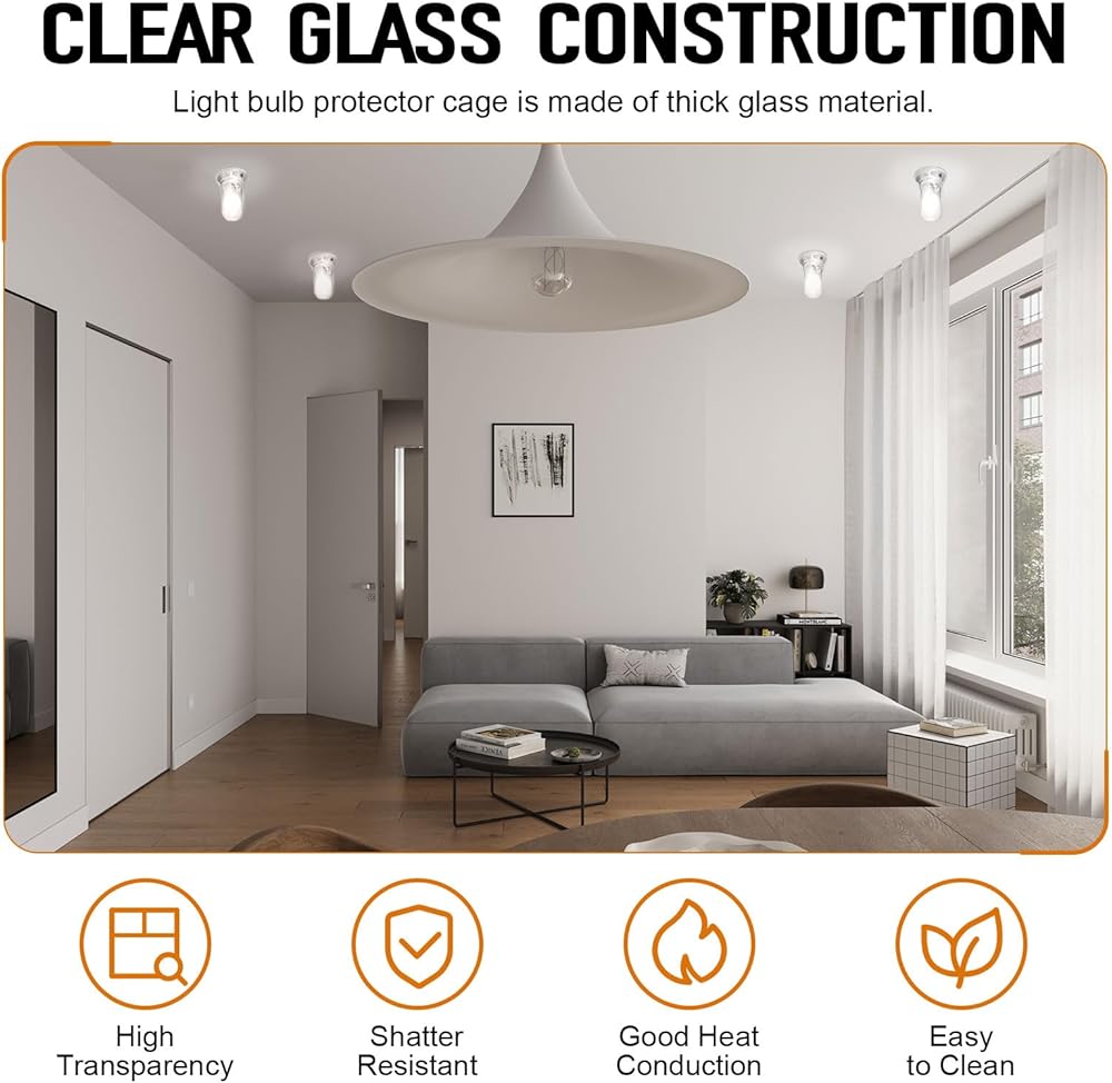 【Package Contents】Each package includes 1 pack light bulb safety cage replacement with a depth of 6.65 inches and a diameter of 3.37 inches. Prior to purchase, please ensure the dimensions match your light fixture for a seamless fit.