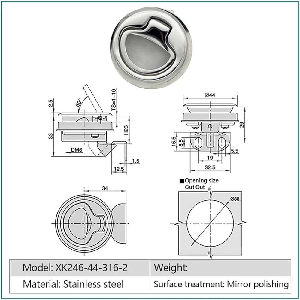 XK246-44 Zinc Aolly Small Round Handle Pull Ring Cam Lock Marine Latch With Car And Ships 1Pcs
