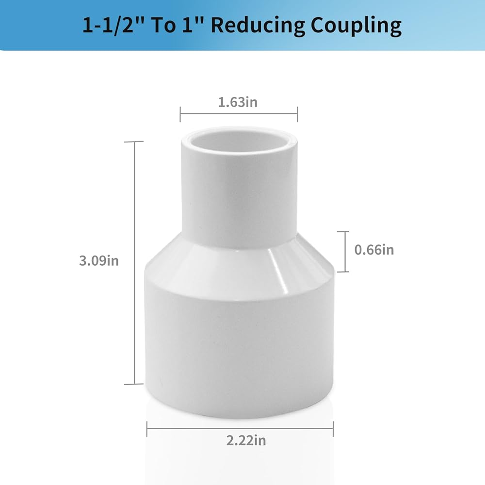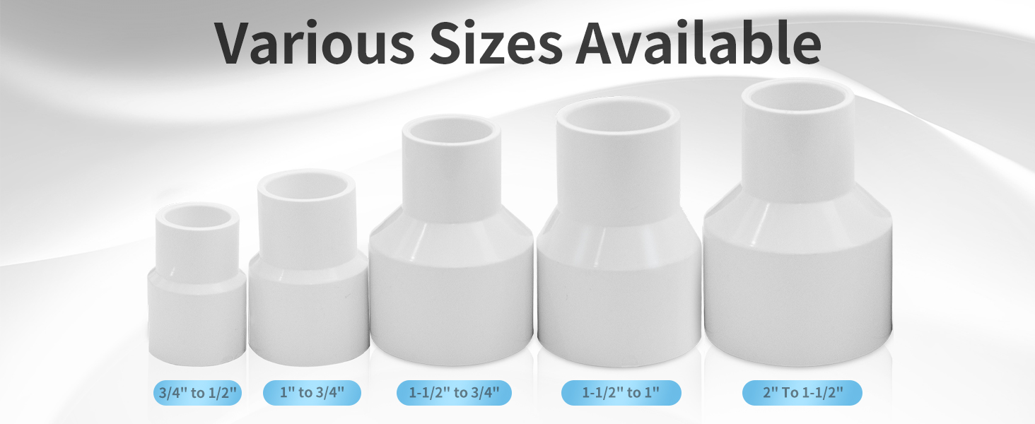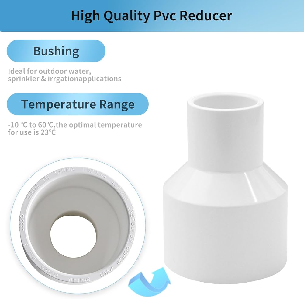 اقتران التخفيض متعدد الاستخدامات: حل عالمي لمخفضات الري وتركيبات حمامات السباحة والمنتجعات الصحية والمشروعات التي تصنعها بنفسك. استخدم وصلات التخفيض PVC هذه لبناء الأثاث، أو إطارات الحدائق، أو تعزيز أنظمة سقي العشب.