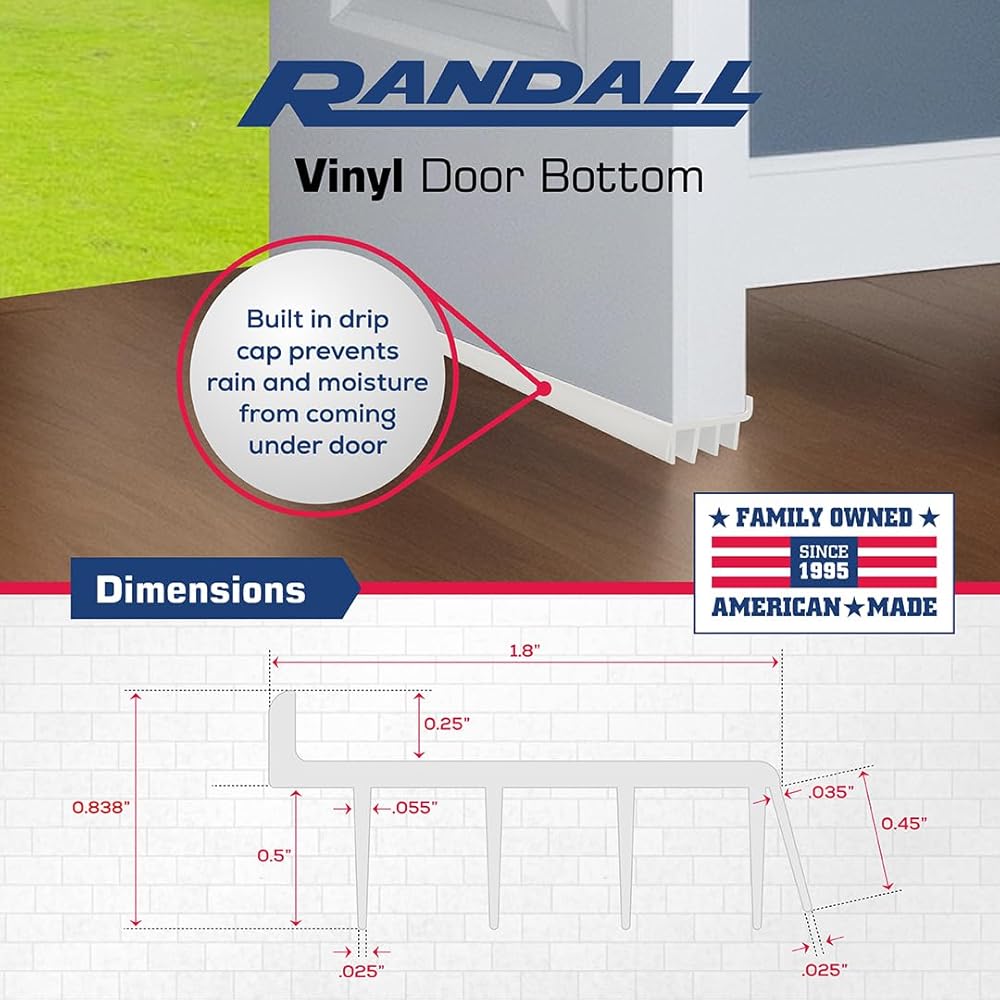 3 FT - White Vinyl Door Bottom for 1 3/4"- 2" Thick Doors 3 FT P-12-WH