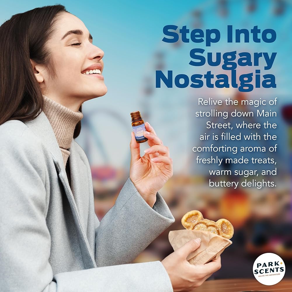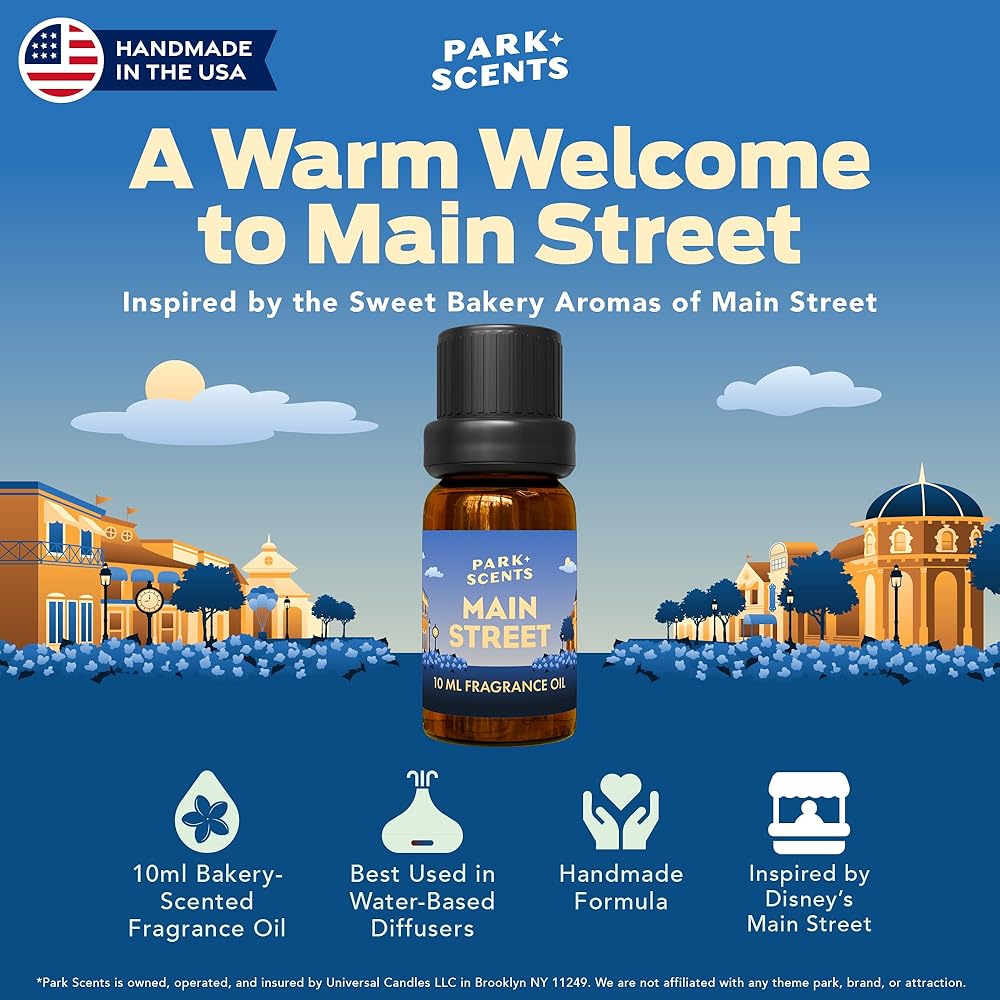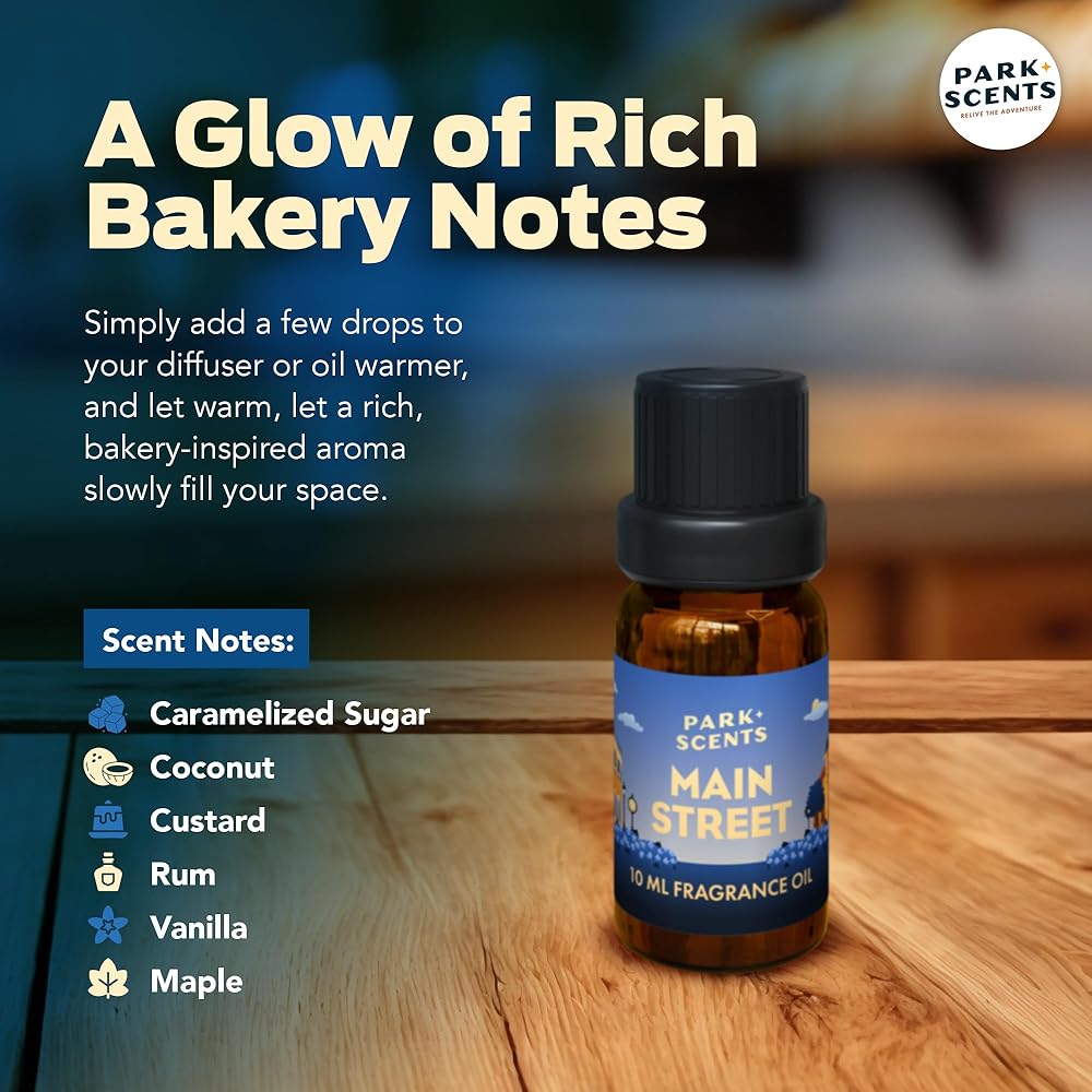 Park Scents Main Street Fragrance Oil – Theme Park Scented Essential Oils for Diffusers with Caramelized Sugar, Coconut, Custard, Rum, Vanilla, Maple – Home Aromatherapy Gifts, Made in USA (10ml)