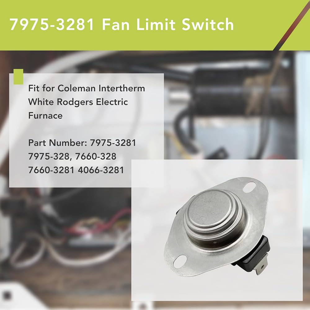 The 7975-3281 Fan Limit Switch is an essential component for maintaining the efficiency and safety of your electric furnace. Engineered with precision, this switch ensures accurate temperature control, preventing overheating and optimizing airflow.
