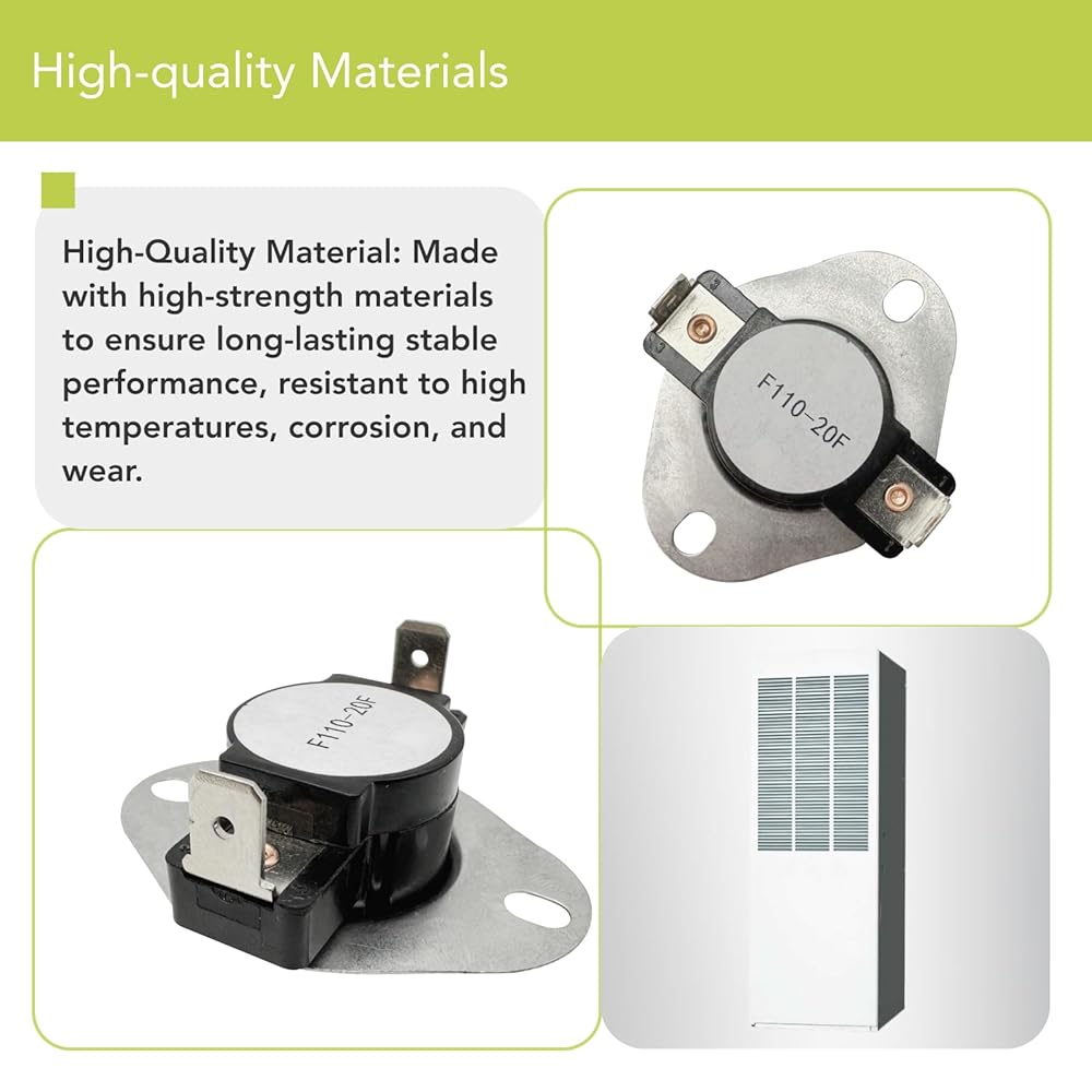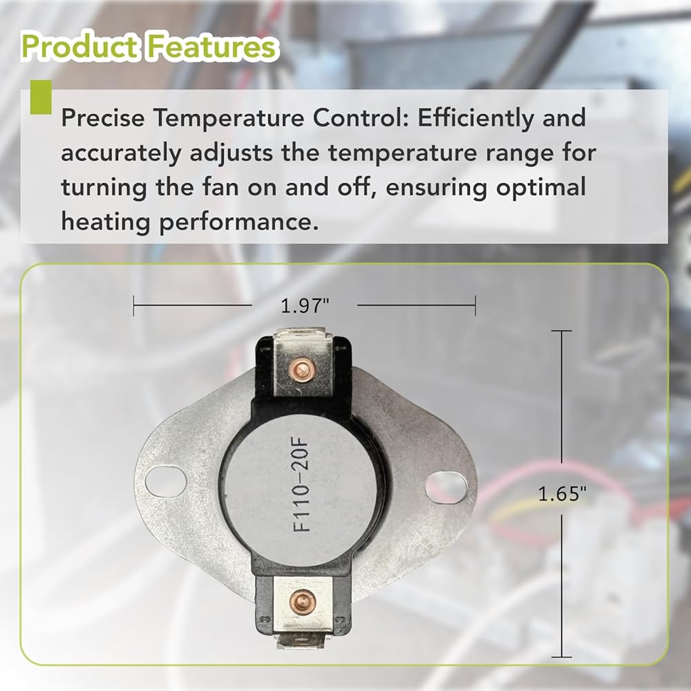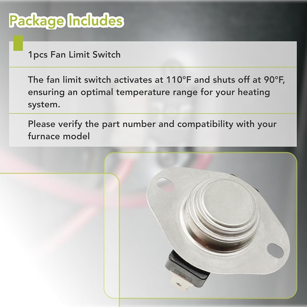 Made from high-quality metal, it offers exceptional durability and reliability. The fan limit switch activates at 110°F and shuts off at 90°F, ensuring an optimal temperature range for your heating system.
