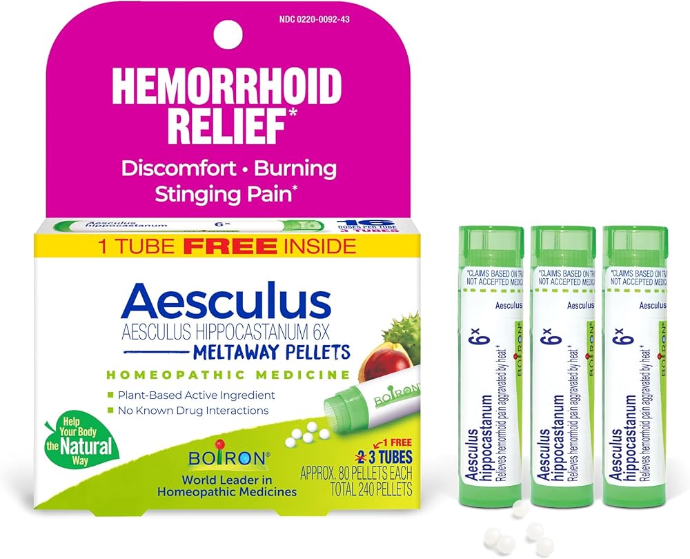 Boiron Aesculus Hippocastanum 6X Homeopathic Medicine for Hemorrhoid Relief of Discomfort, Burning, or Stinging Pain - 3 Count (240 Pellets)