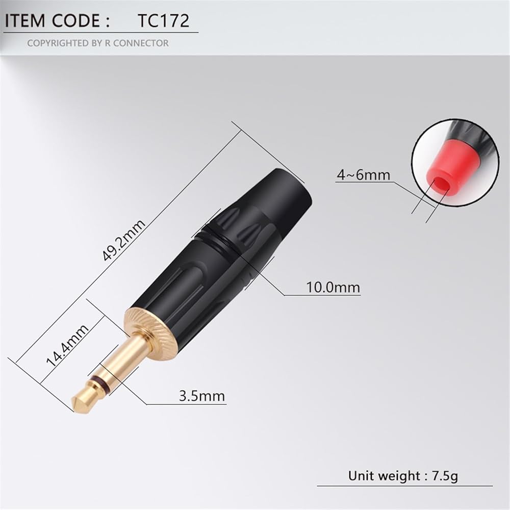 2 Poles Jack 3.5MM Mono Male Plug Wire Connector Microphone Earphone Headphone Jacks R Connector