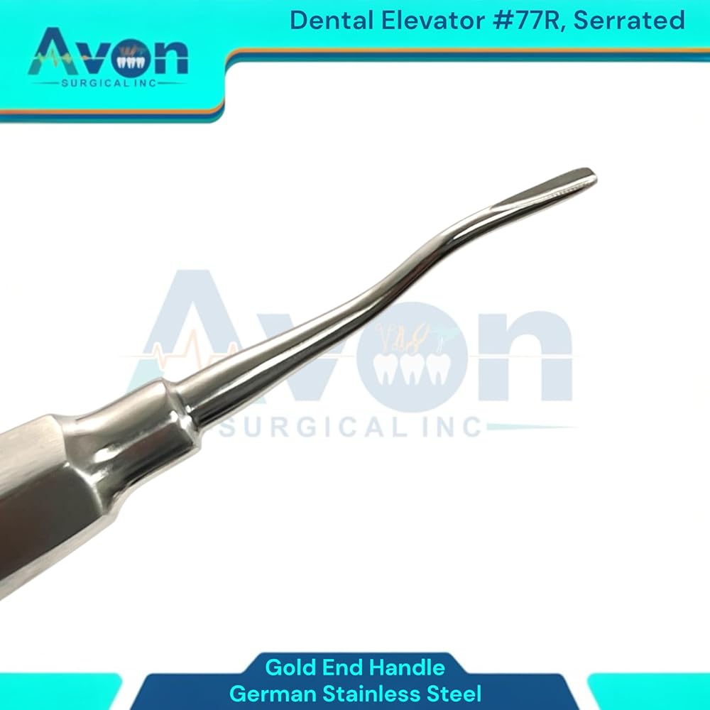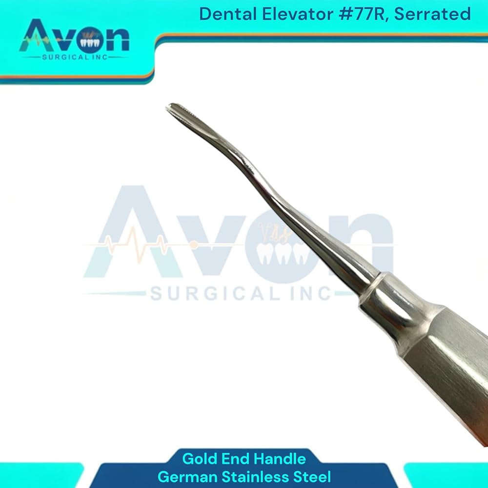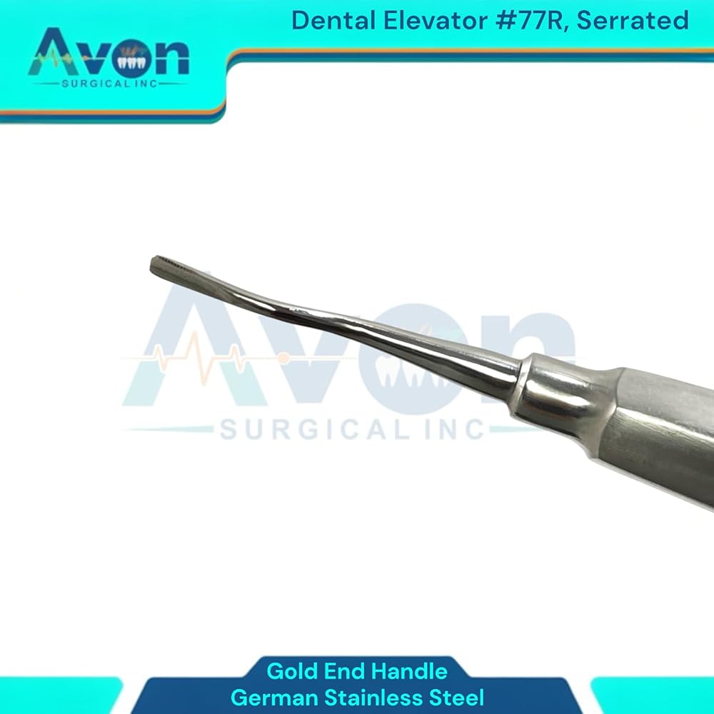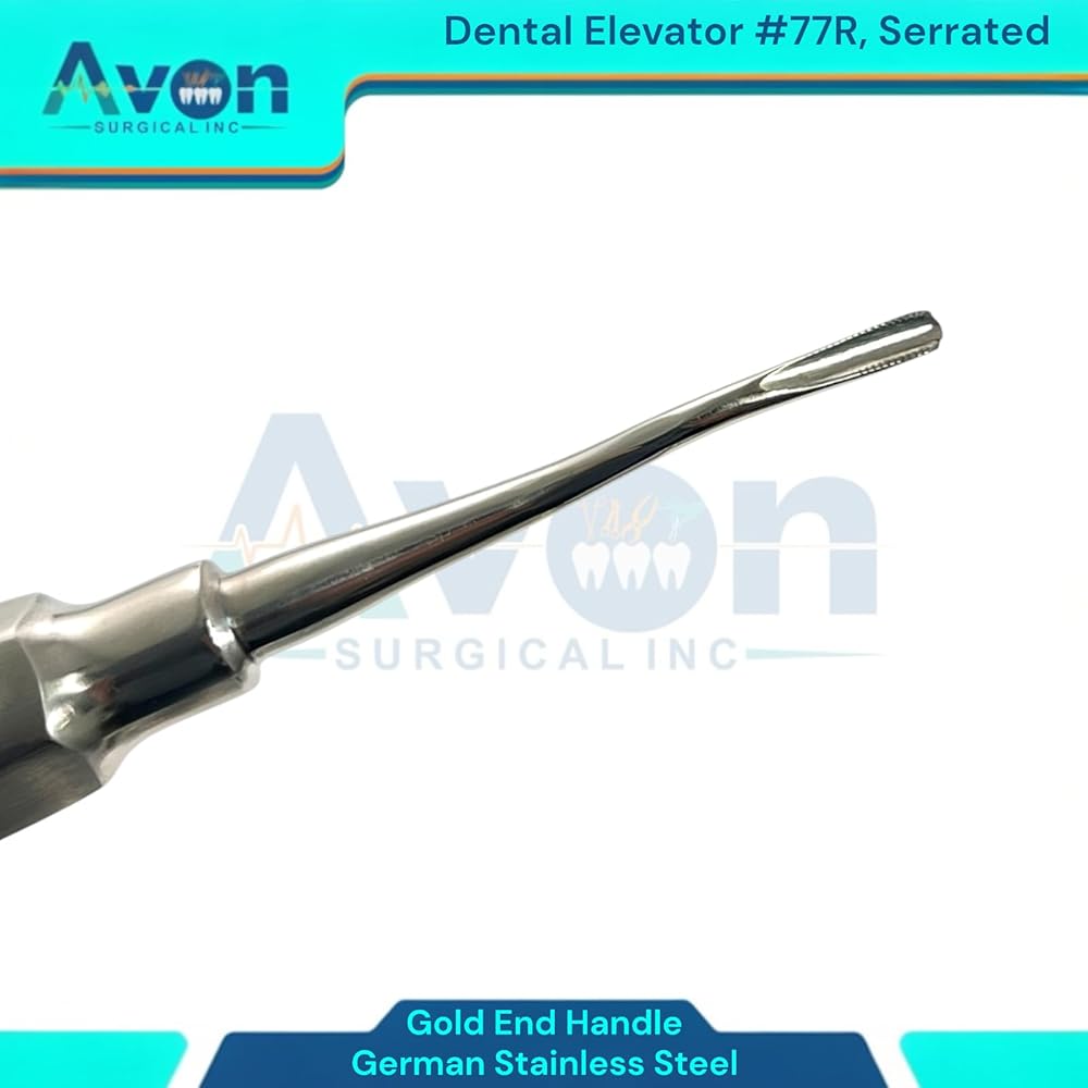 Includes: 1 Each - #77R Dental Elevator with Slight Offset Bent Tip, Colored-End Hollow Handle - German Stainless Steel.