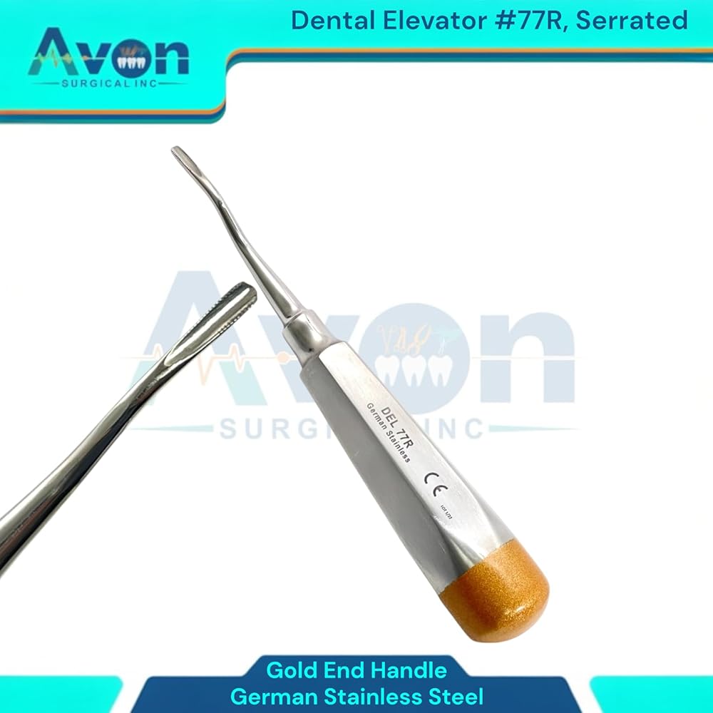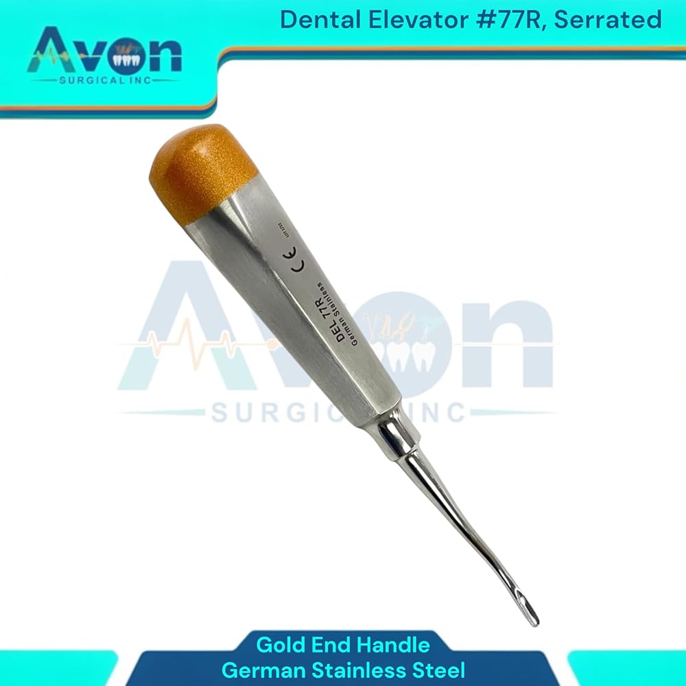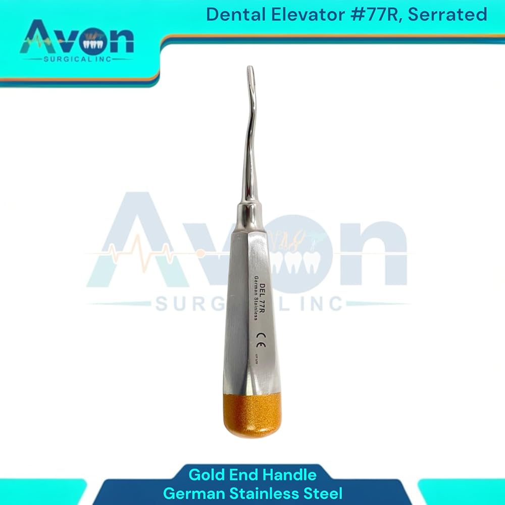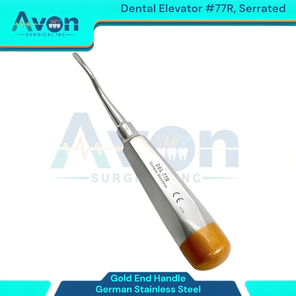 Includes: 1 Each - #77R Dental Elevator with Slight Offset Bent Tip, Colored-End Hollow Handle - German Stainless Steel.