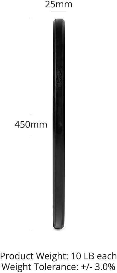 صُنع وفقًا لمعايير IWF: مقاس وفقًا لمعايير الاتحاد الدولي لرفع الأثقال (IWF) حيث يبلغ قطر كل لوحة 450 مم (17.75 بوصة)، مما يوفر ارتفاعًا ووزنًا ثابتًا للرفع الذي يمكن الاعتماد عليه.