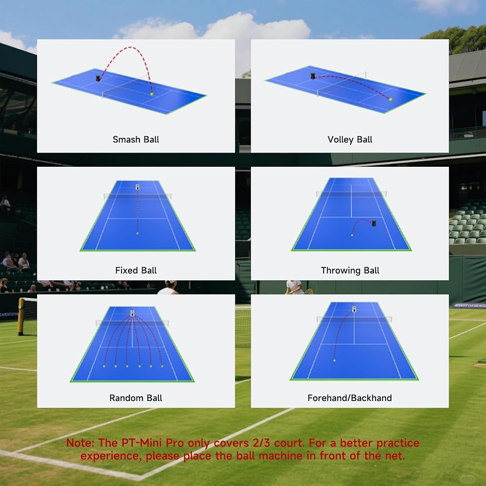 آلة كرة التنس، آلة إطلاق كرة التنس المحمولة PT-Mini Pro للتمرين والتدريب، دعم التطبيق وضبط السرعة والزاوية عن بعد، تحمل أكثر من 65 كرة في وقت واحد، سهلة الاستخدام