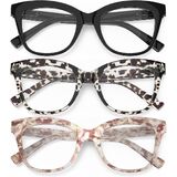 • نظارات قراءة نسائية مكونة من 3 قطع مع خاصية حجب الضوء الأزرق وميزات مضادة للوهج