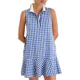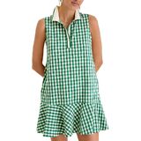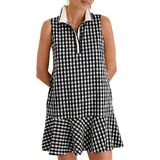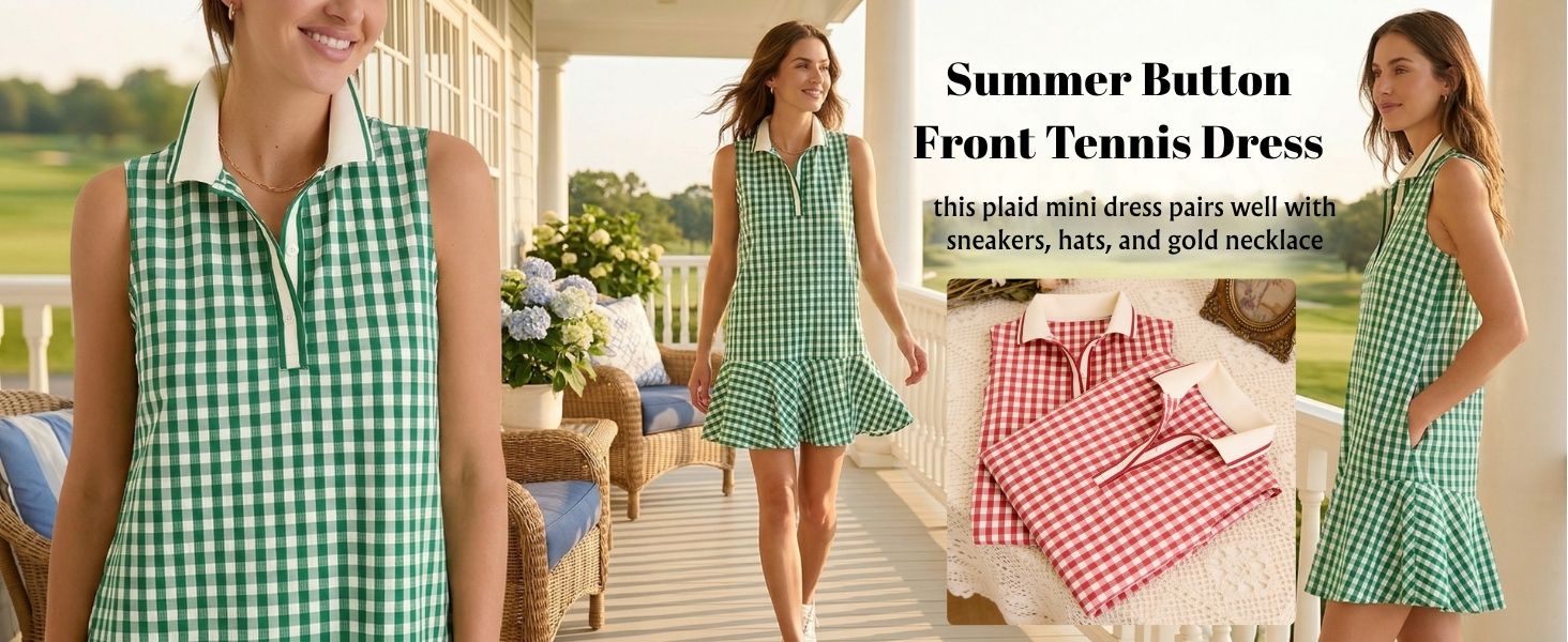التصميم: يتميز فستان الجولف النسائي المنقوش بياقة بولو مع زخرفة متباينة، مع فتحة زر أمامي جزئي، وتصميم بدون أكمام، وجيوب جانبية، وحاشية مكشكشة، ونمط القماش القطني الكلاسيكي يضيف لمسة من الأناقة السهلة إلى أي مناسبة