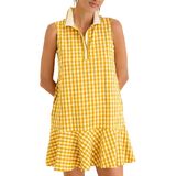 القماش: فستان بولو نسائي برقبة على شكل حرف V مصنوع من نسيج قطني خفيف الوزن وقابل للتمدد، يسمح بنطاق كامل من الحركة أثناء كل أرجوحة، ويوفر التهوية ويبقى مريحًا ليبقيك منتعشًا وجافًا في الطقس الحار