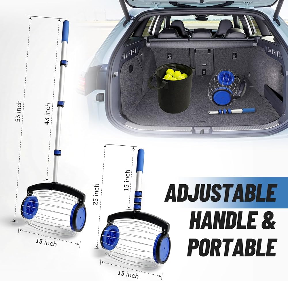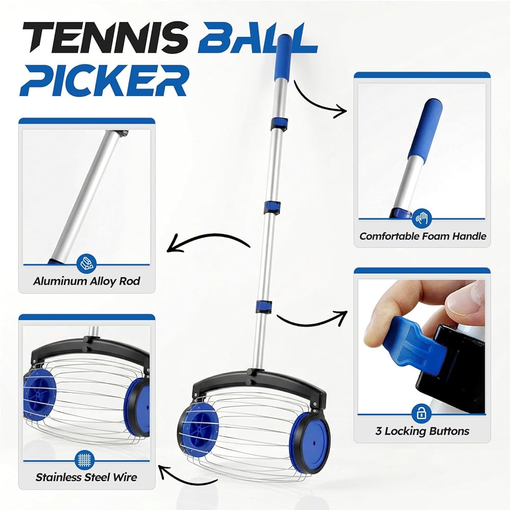 🎁【𝐈𝐃𝐄𝐀𝐋 𝐆𝐈𝐅𝐓 𝐅𝐎𝐑 𝐓𝐄𝐍𝐍𝐈𝐒 𝐄𝐍𝐓𝐇𝐔𝐒𝐈𝐀𝐒𝐓𝐒】This tennis ball collector features high-efficiency picking, an essential tool for long training sessions. It eliminates tedious manual ball collection. A thoughtful practical gift for tennis lovers, coaches and beginners.