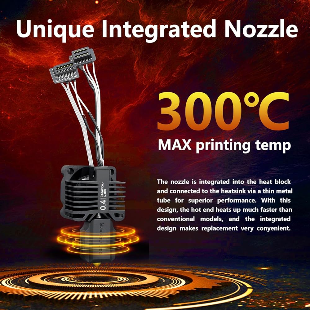 • High Temperature Resistance & Durable : Bamboo lab p1p/p1s hotend nozzle Supports up to 300°C, enabling compatibility with a wide range of filaments including PLA, PETG, TPU, ABS, PA, PC, PA-CF, and PA-GF