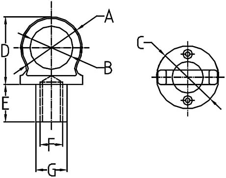 • See Diagram: A) 2-7/32" B) 1-1/2" C) 2-3/16" D) 2-3/8" E) 7/8" F) 5/8-11UNC G) 31/32"