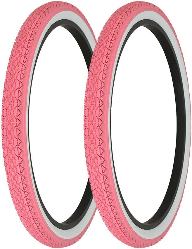 دراجة مقاس 26 بوصة × عرض 2.125 إطارين (زوج واحد) AL-1333 جدار جانبي وردي/أبيض بتصميم ماسي