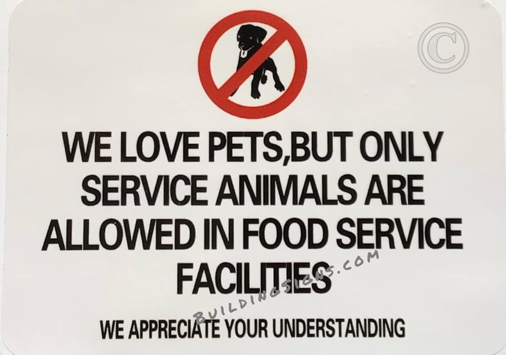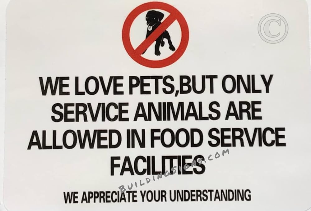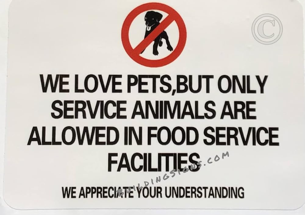 ✅ NO PETS IN RESTURANT SIGN - WE LOVE PETS, BUT ONLY SERVICE ANIMALS ARE ALLOWED IN FOOD SERVICE FACILITIES STICKER SIGN