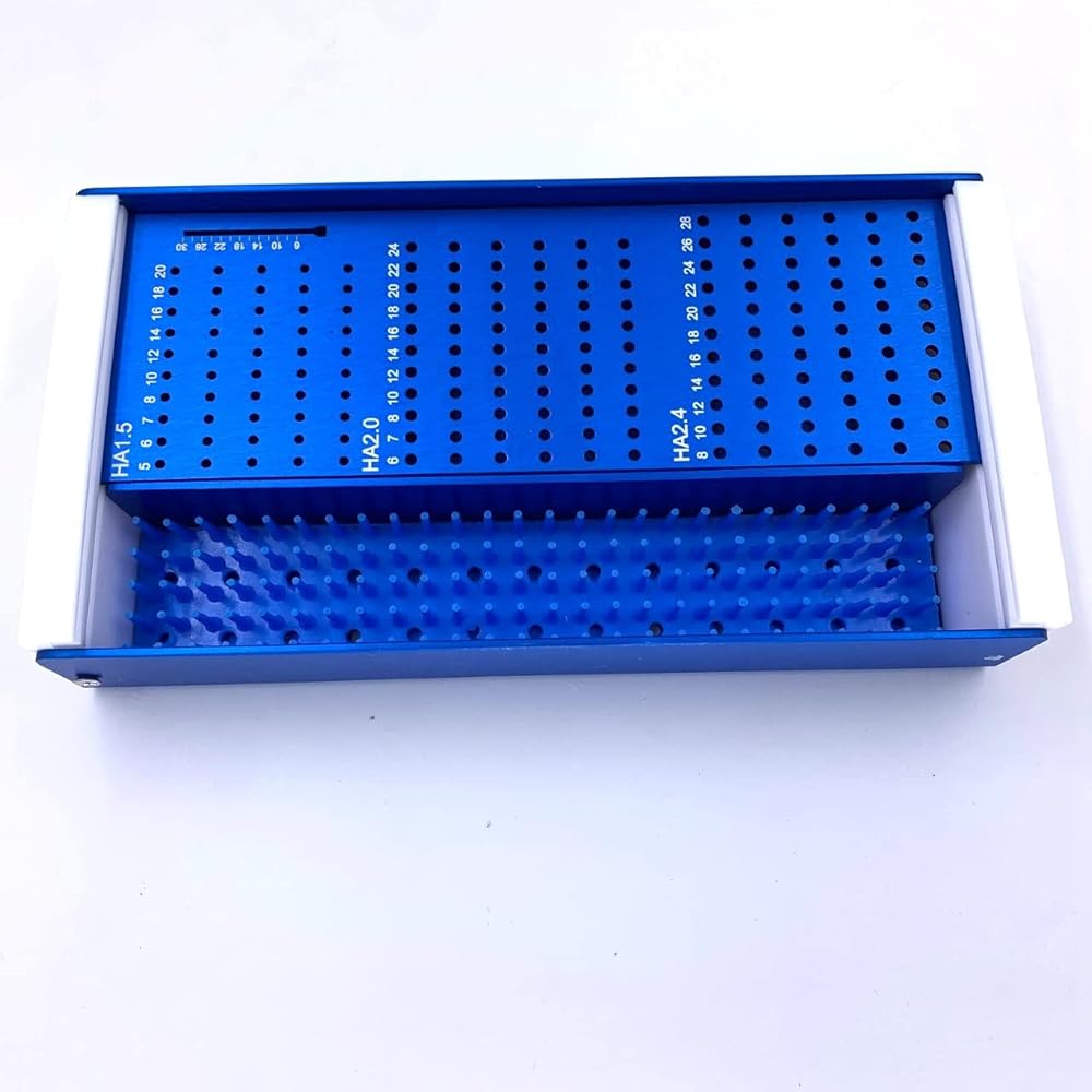 علبة تعقيم باللون الأزرق مسامير صندوق رف ل HA1.5mm 2.0 مللي متر 2.4 مللي متر أدوات جراحة العظام البيطرية الصغيرة للحيوانات