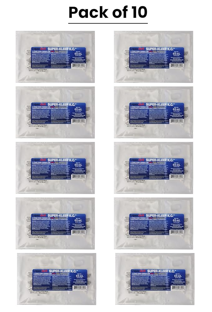 Liquor Kwik Super Kleer K.C. (10 Pack) Beer, Wine & Cider Clarifier with 2-Stage Kieselsol & Chitosan Finings. All-Natural, Fast-Acting Homebrew Clarifier. Clears up to 6 Gal