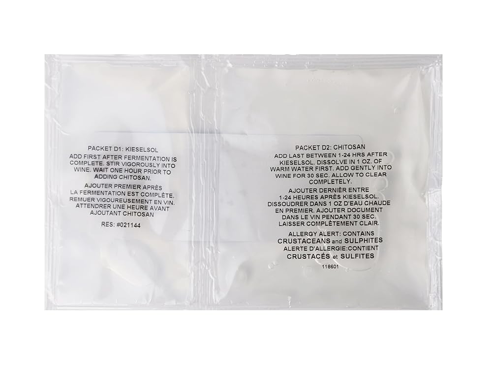 [WHAT'S INCLUDED] Each pack includes 10 complete 2-stage clarifier sets, with pre-measured Kieselsol and Chitosan finings. Each set treats up to 5–6 gallons of beer, wine, or cider.