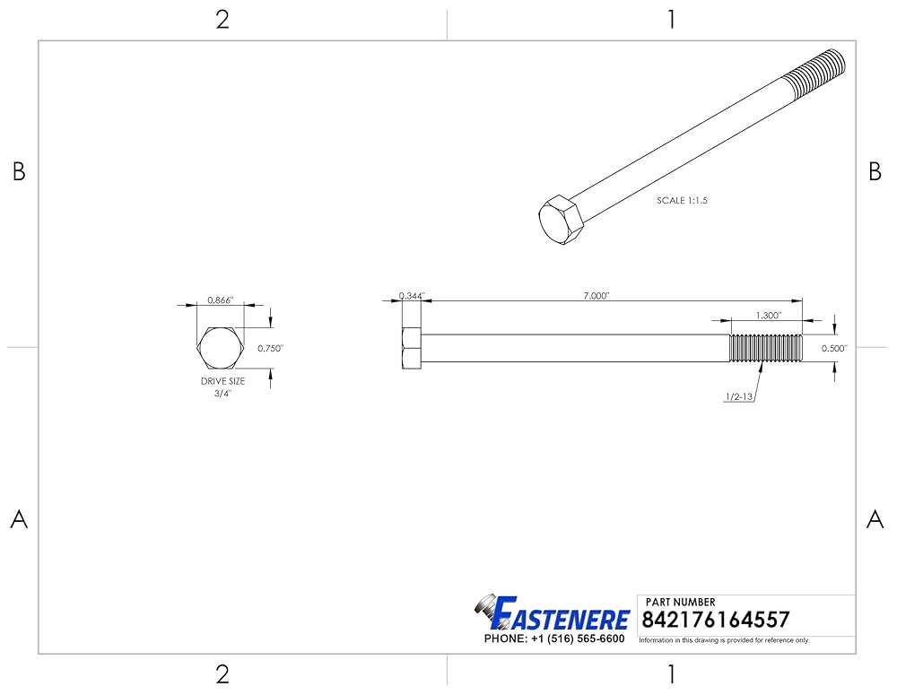 مسامير لولبية بغطاء رأس سداسي مقاس 1/2-13 × 7 بوصة، محرك سداسي خارجي، فولاذ مقاوم للصدأ 304، ملولب جزئيًا، فولاذ مقاوم للصدأ، الكمية 25 من Fastenere