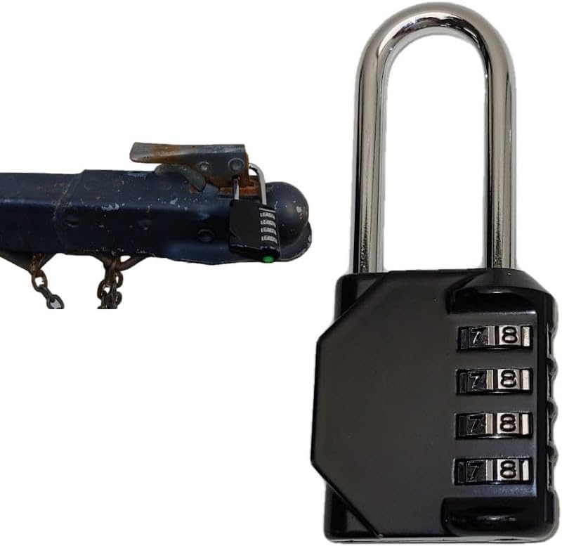 Black or Silver resettable combination lock that can be used for the hitch on trailers as they are great for that. Set your own four digit numerical combination. Light duty lock, but is great to prevent someone from taking your trailer when pulling it. Shank of 2.24in (57mm), the combination lock is perfect for both indoor and outdoor tasks such as gym locker padlock, code padlock for cabinets, pantries, and toolboxes, gate & door hasps, garages, sheds, Chains, fences and general storage. Not Packaged for resale. Specification Size: 1.67*0.85*4.17in Shakle Length: 2.24in Shackle Dia: 0.23 in/6mm Shackle Material: hardened steel Body Material: zinc alloy
