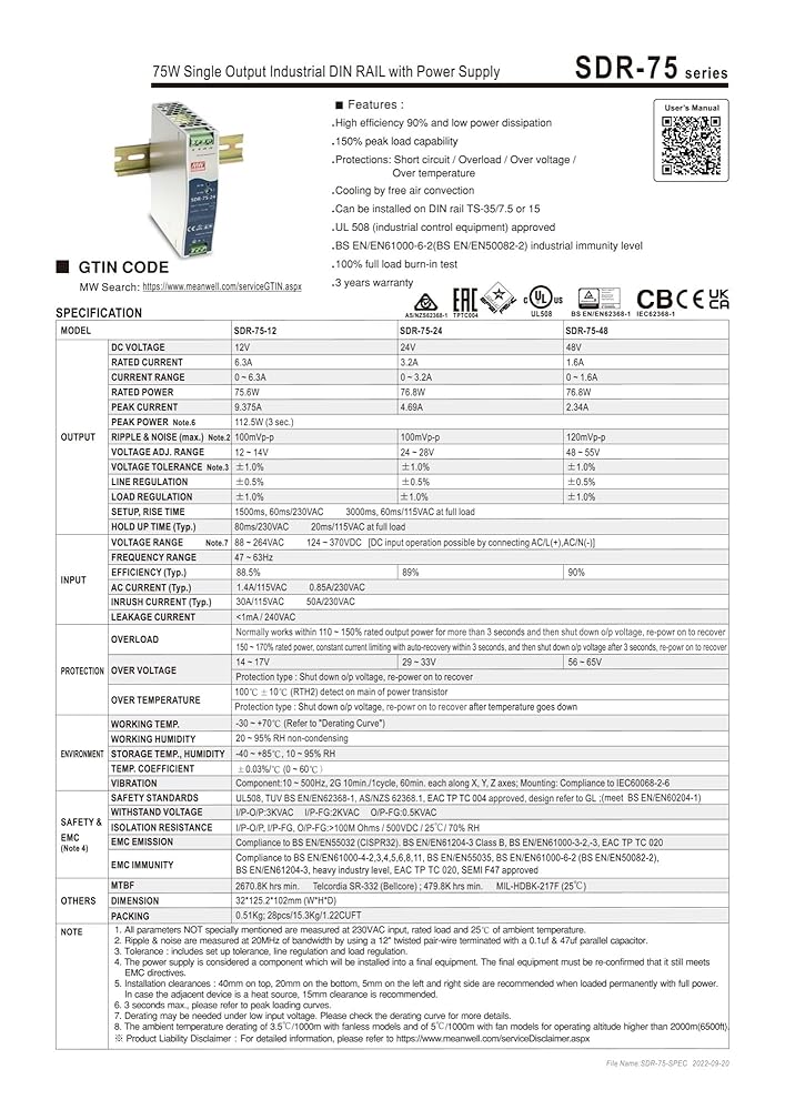 - SDR-75-48 76.8W Single Output Industrial DIN RAIL with Power Supply SDR-75 48V 1.6A