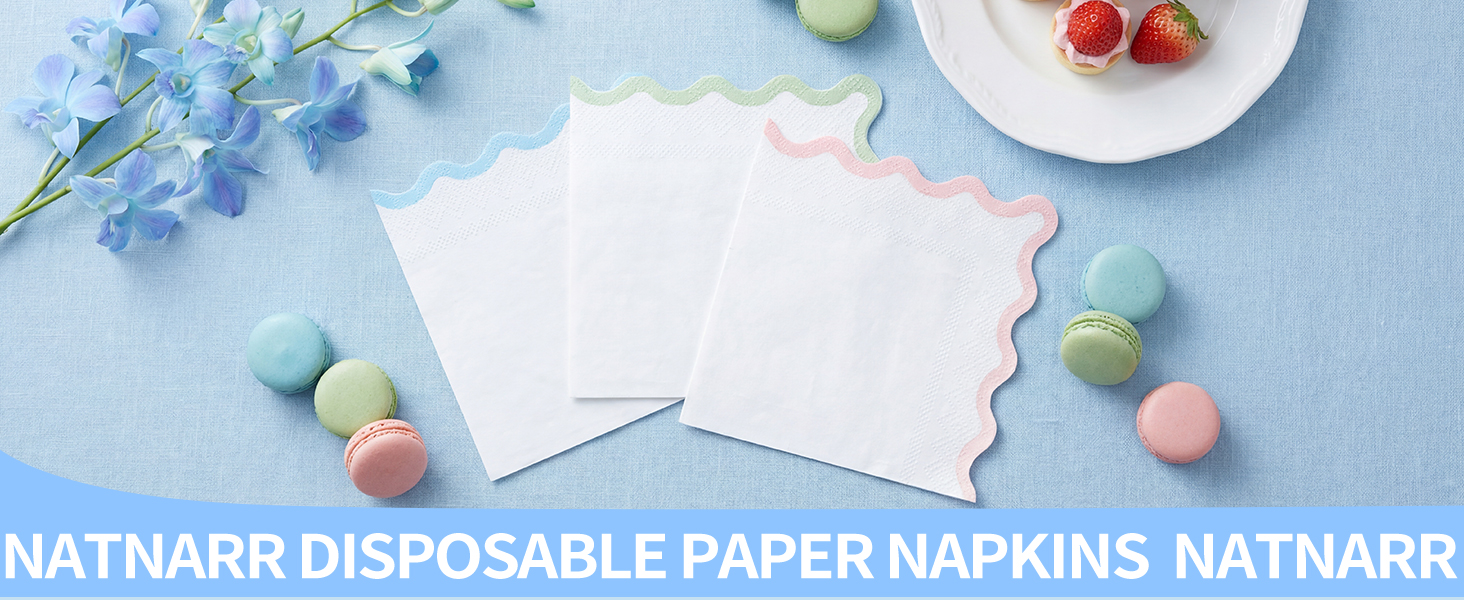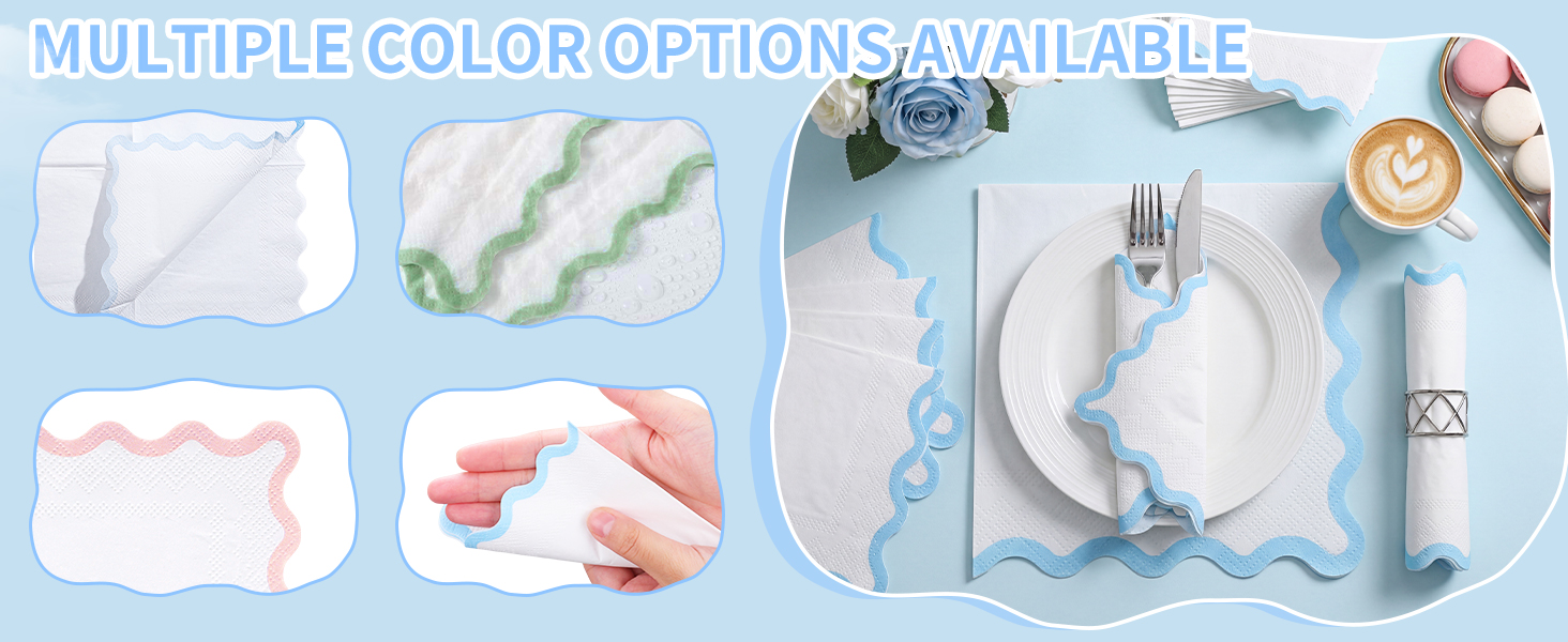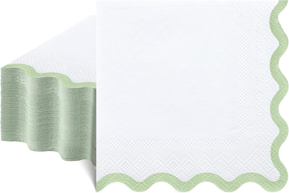 تصميم فريد: تتميز هذه المناديل ذات الصدفية بتصميم ثنائي اللون مع حواف خضراء داكنة، مما يضيف لمسة من السحر والأناقة إلى إعداد طاولتك. هذه المناديل التي تستخدم لمرة واحدة متوفرة في مجموعة متنوعة من الألوان.