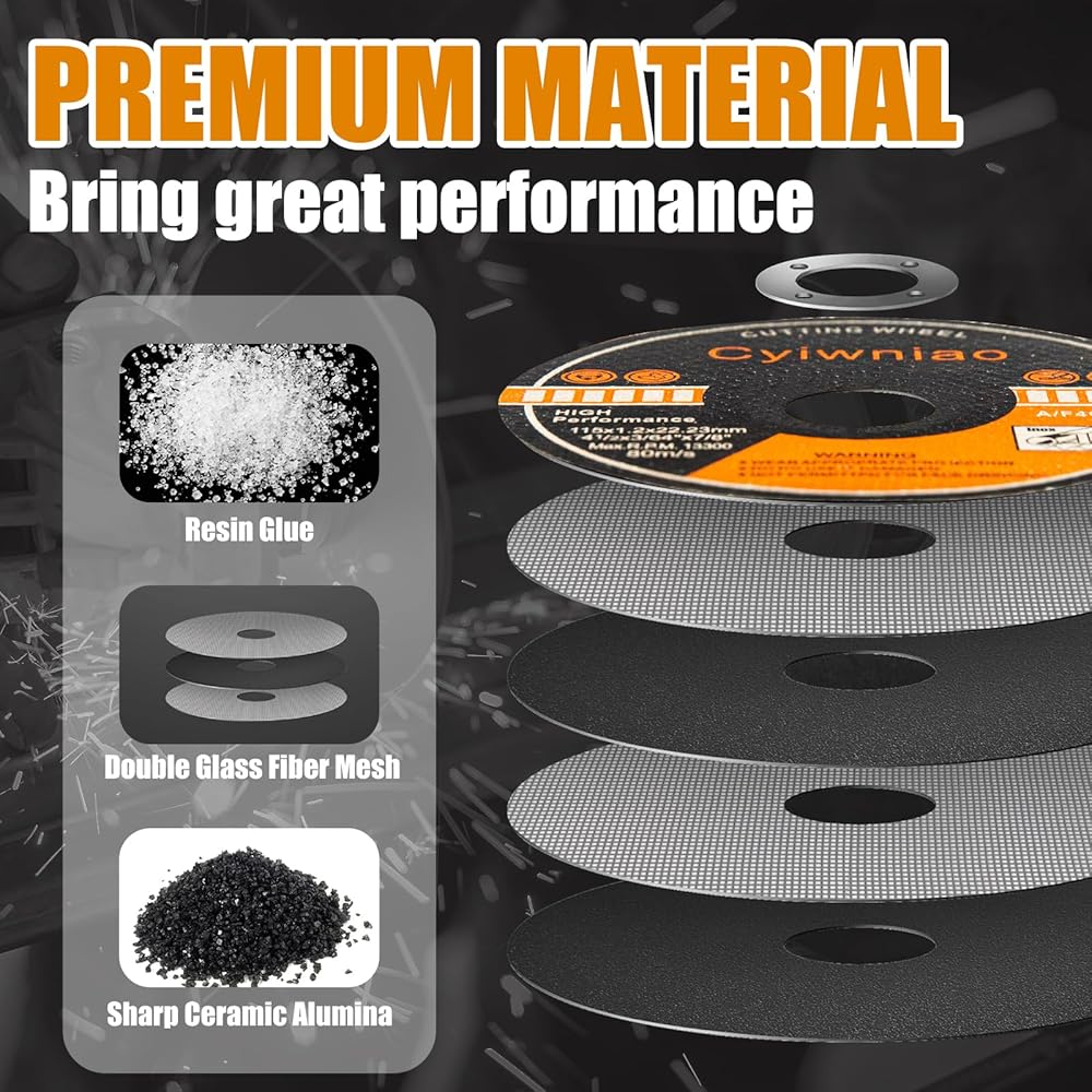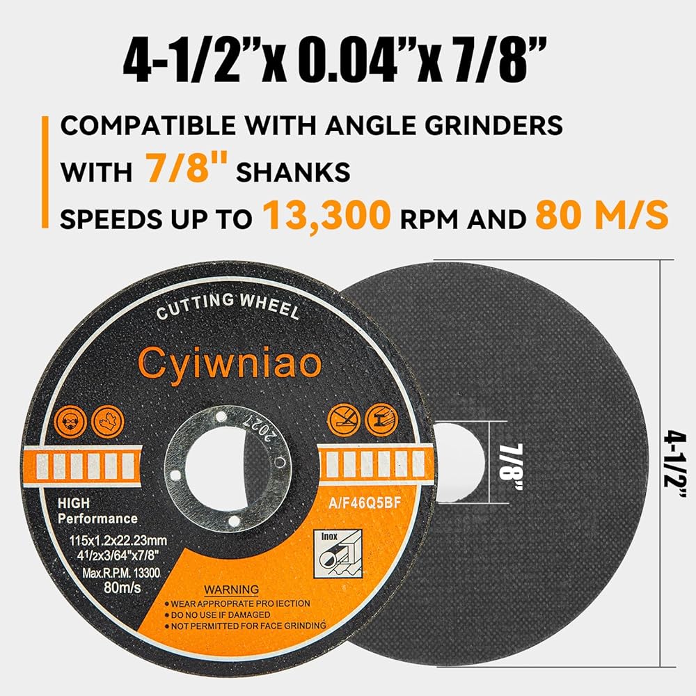 【WIDE USE】These 4 1/2 cutting wheels are ideal for a variety of cutting jobs, such as cutting fiberglass, steel, iron, plastic, stainless steel including rebar, steel pipe, structural & galvanized steel, sheet metal, structural tubing, black steel , and other ferrous metals