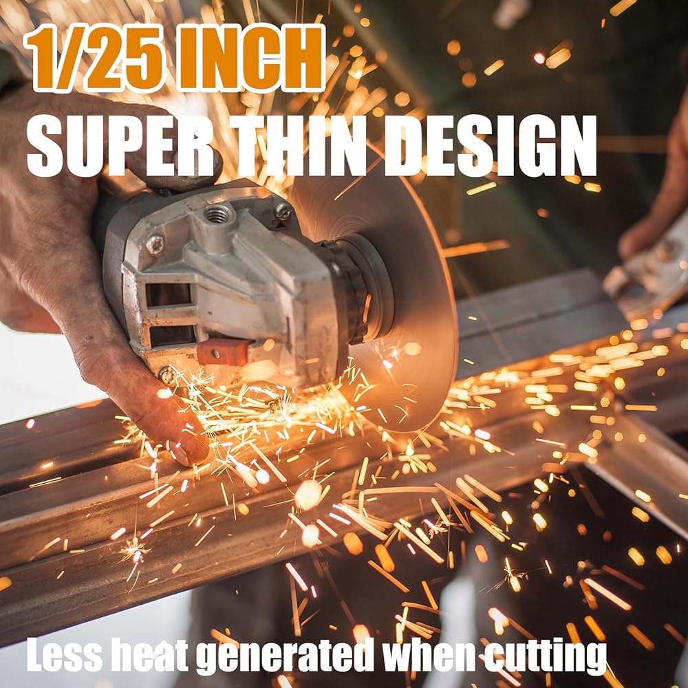 【Designed for sharp cutting】The ultra-thin thickness of 0.04 inches enhances the cutting wheel performance, and the unique design of the disc promotes heat dissipation, avoids metal thermal burns, and reduces material loss during cutting, which means higher efficiency.