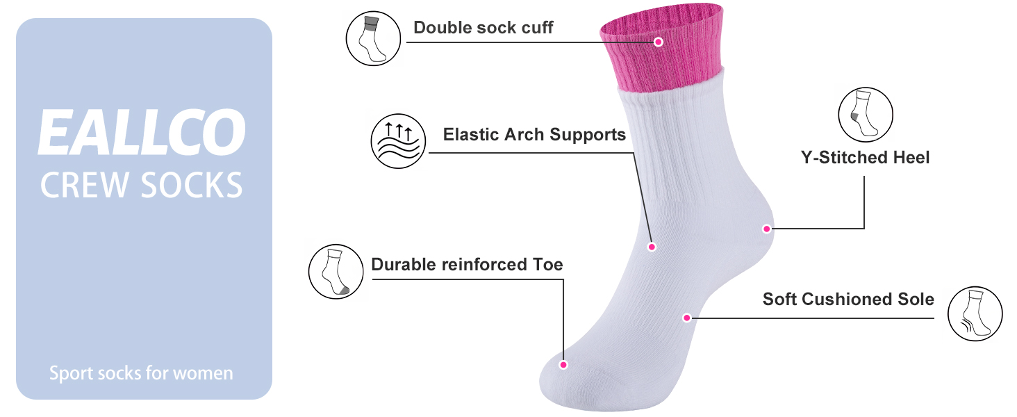 جوارب عصرية للطاقم: جوارب Eallco الرياضية النسائية مصممة بأساور مزدوجة متباينة الألوان ومصنوعة من نسيج بوليستر مبطن عالي الجودة. يضيف التصميم الفريد إلى مظهرك العصري!